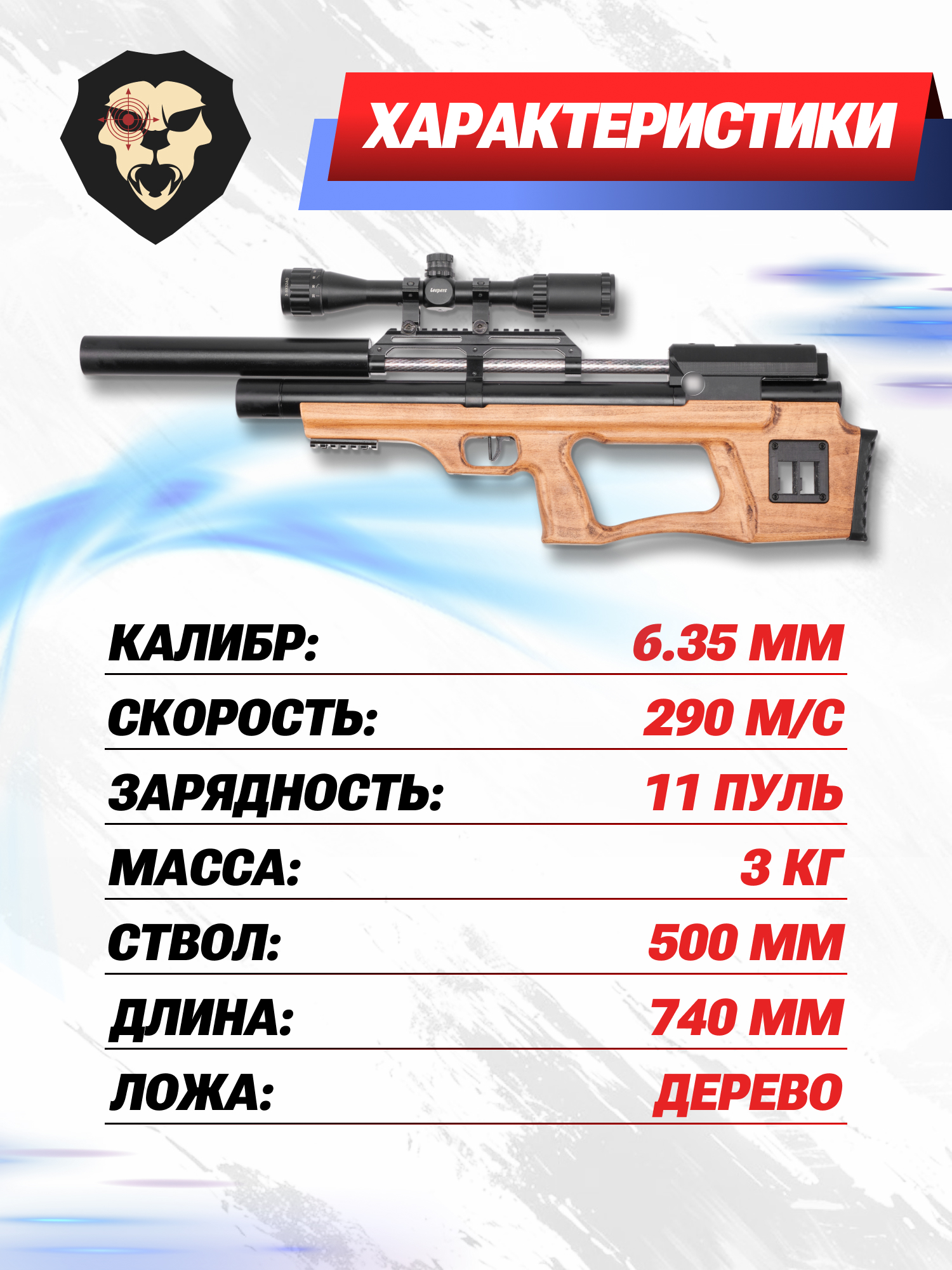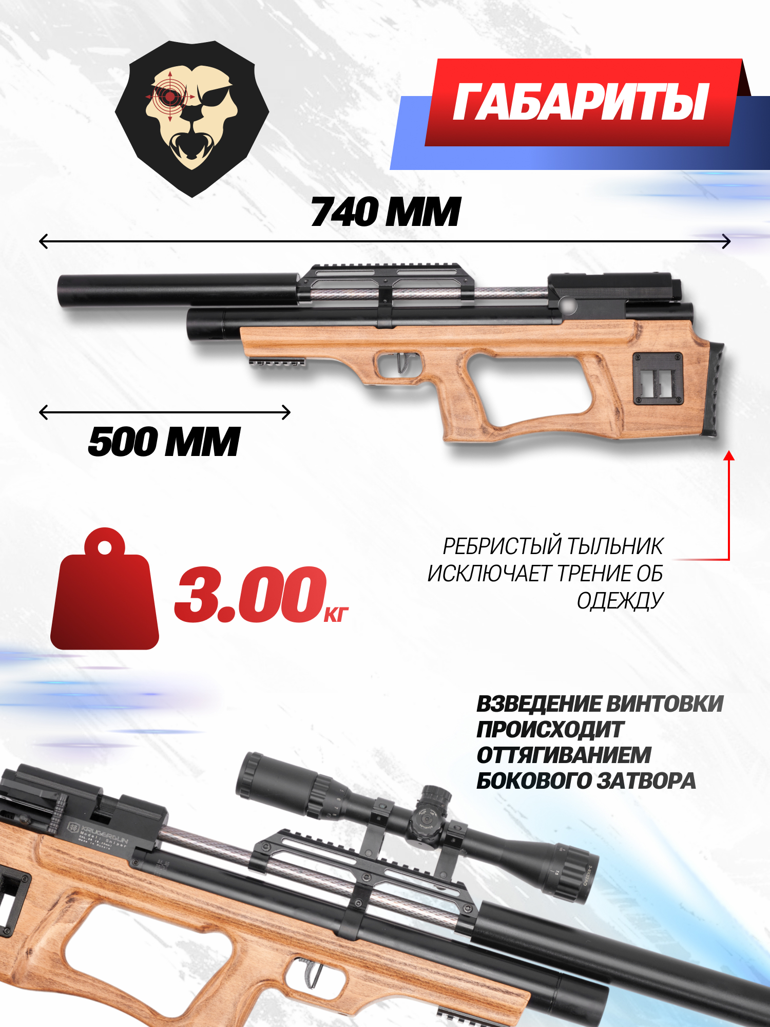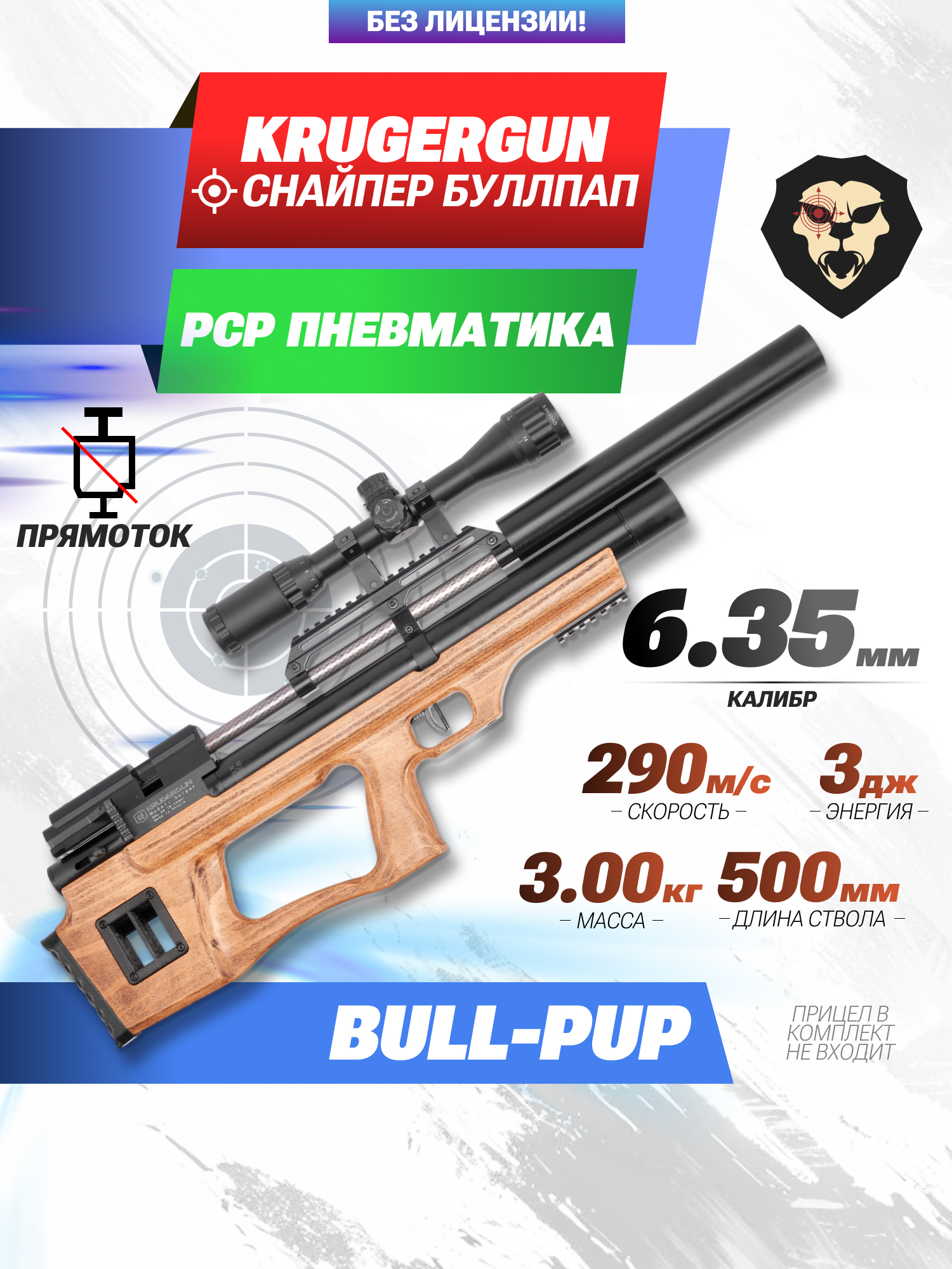 Пневматическая винтовка Krugergun Снайпер Буллпап 6.35 мм (500 мм, прямоток, дерево, резервуар 430) купить в интернет-магазине Popadiv10.