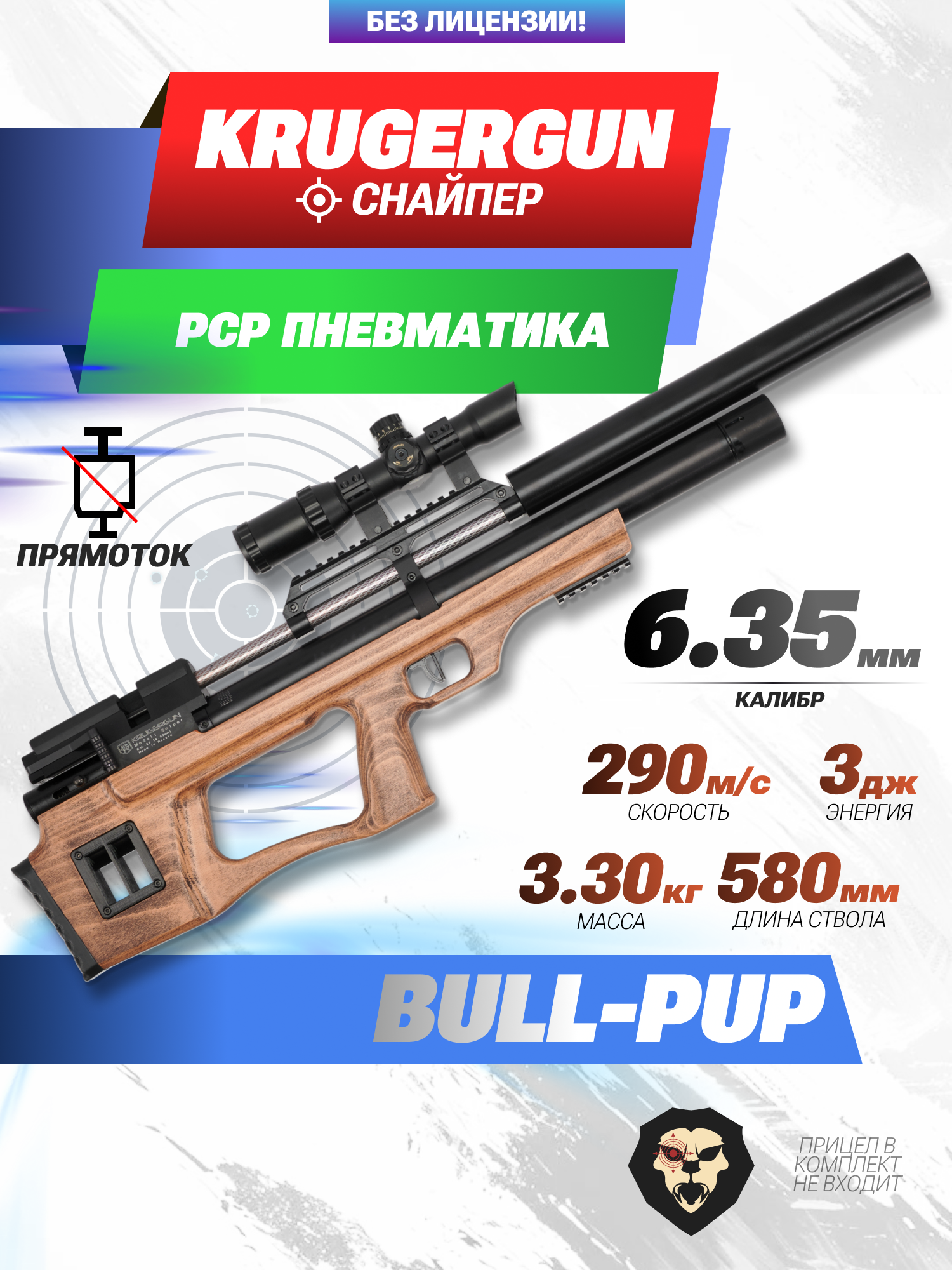 Информация о товаре "Пневматическая винтовка Krugergun Снайпер 6.35 мм Буллпап (580 мм, резервуар 510, прямоток, дерево)" носит ознакомительный характер, и не является публичной офертой, определяемой положениями Статьи 437 Гражданского кодекса Российской Федерации, характеристики, внешний вид, цвет и комплектация могут быть изменены производителем без уведомления.