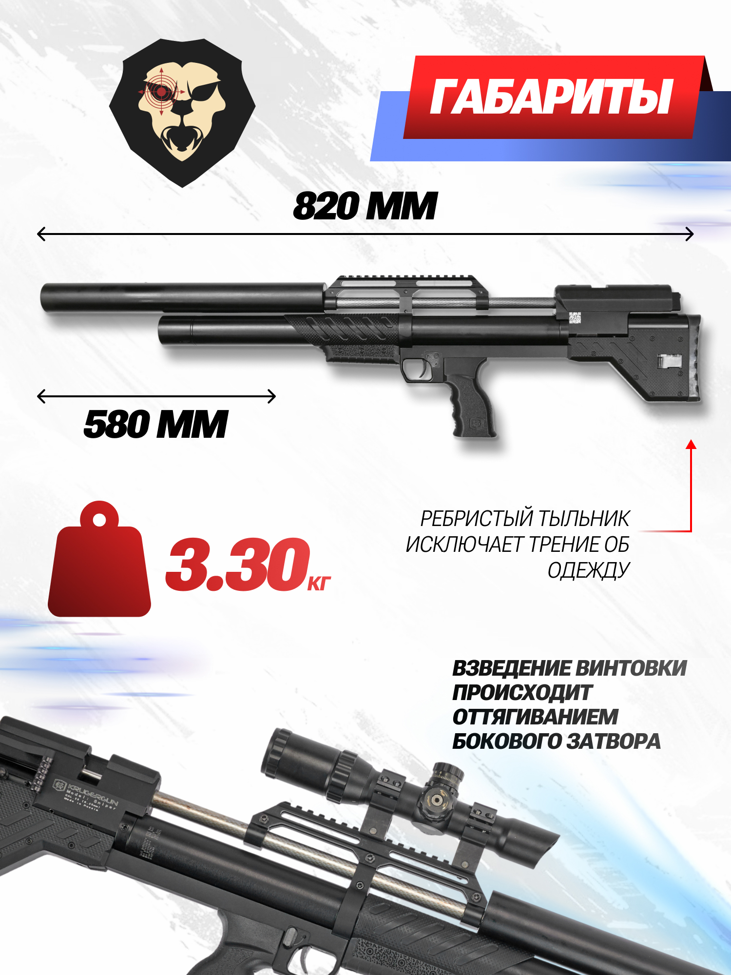 | Комплектация | Винтовка, упаковка, заправочный штуцер, краткая документация, магазин, набор уплотнителей, копия сертификата (по запросу покупателя) |
