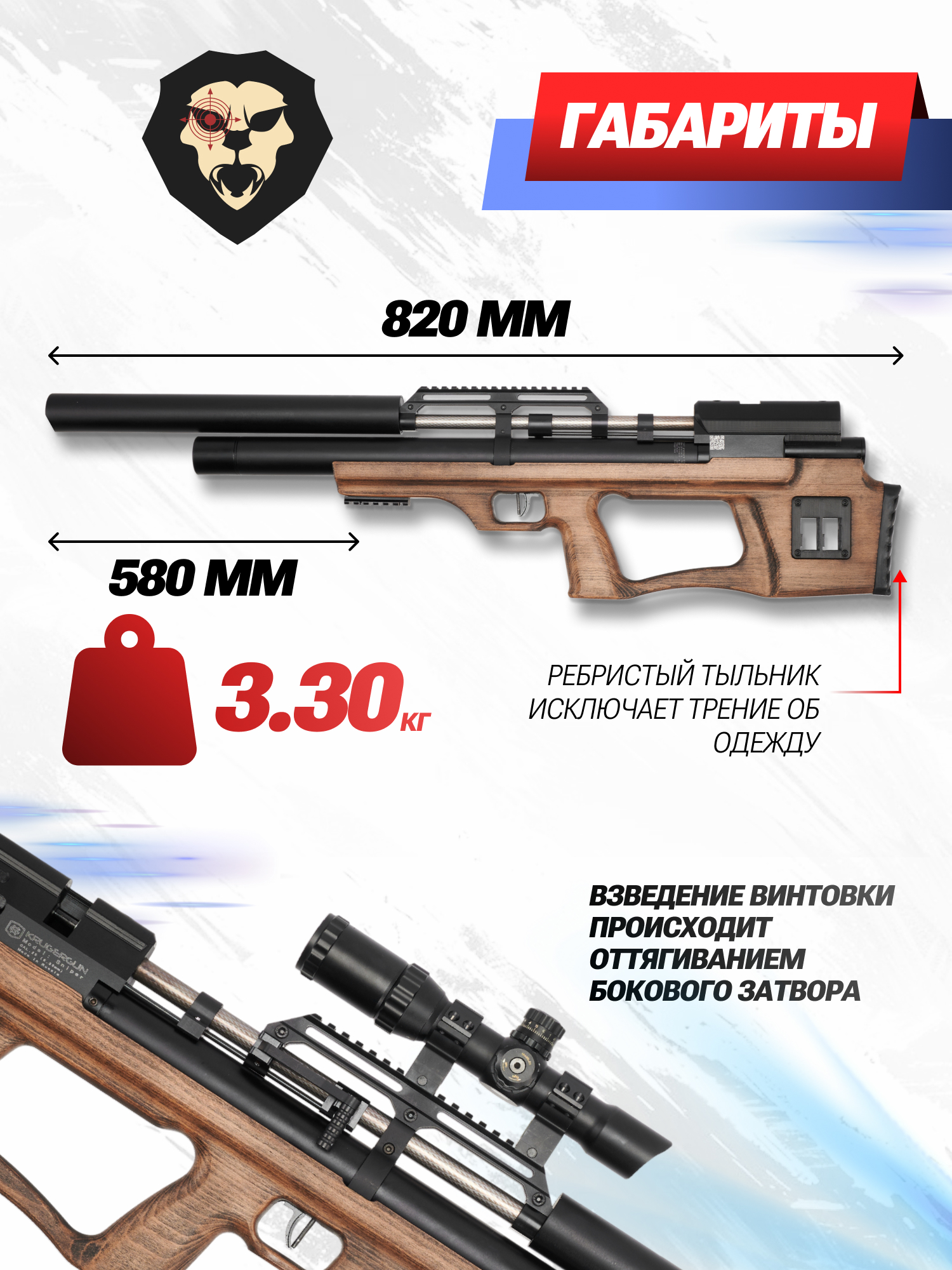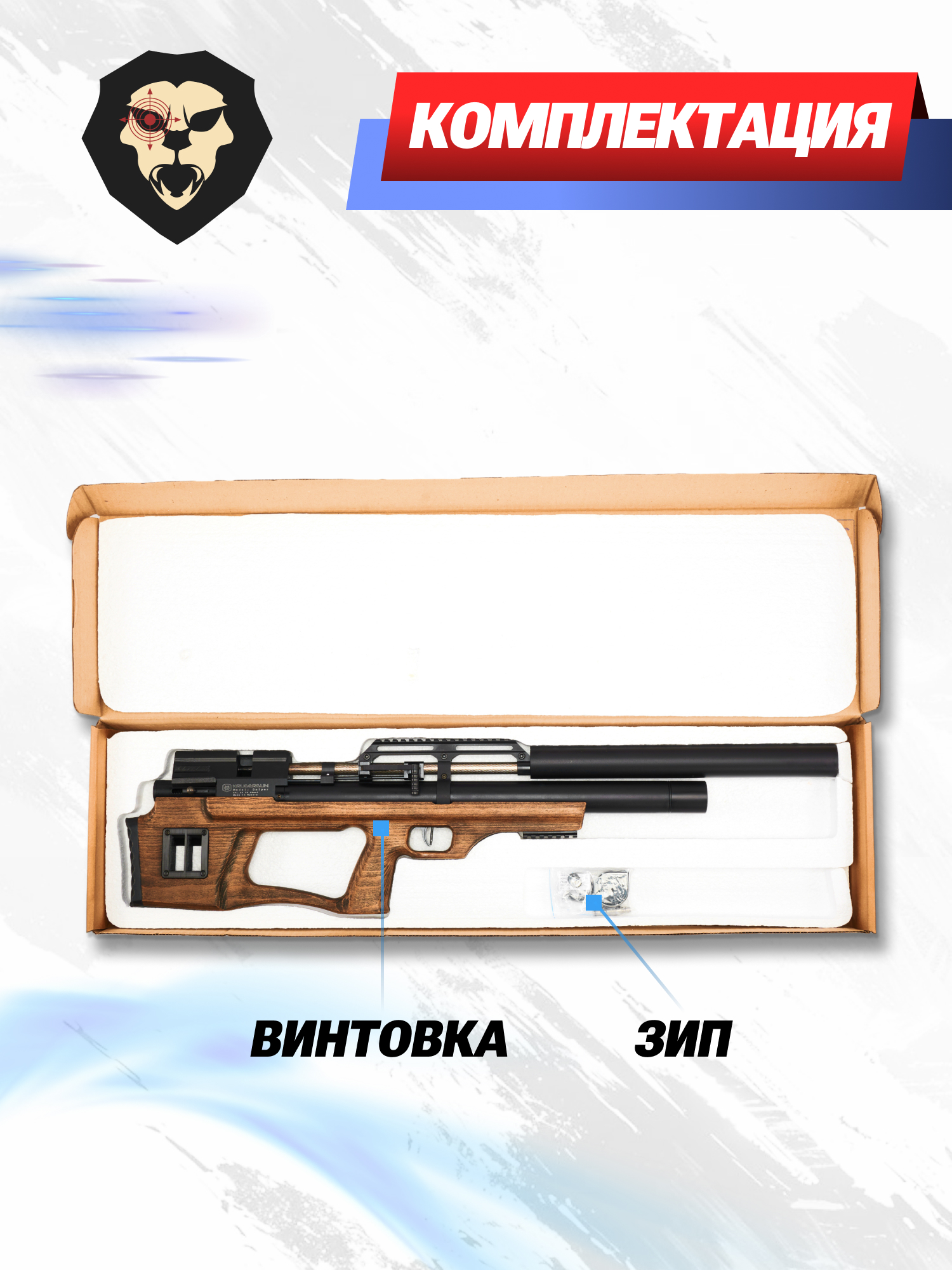 | Комплектация | Винтовка, магазин, набор уплотнителей, упаковка, заправочный штуцер, краткая документация, копия сертификата (по запросу покупателя) |