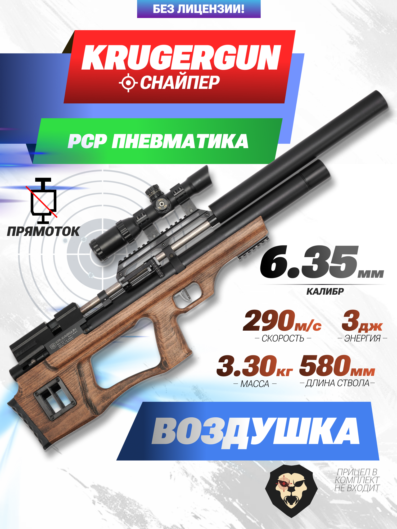 Информация о товаре "Пневматическая винтовка Krugergun Снайпер 6.35 мм Буллпап (580 мм, резервуар 510, передний взвод, прямоток, дерево)" носит ознакомительный характер, и не является публичной офертой, определяемой положениями Статьи 437 Гражданского кодекса Российской Федерации, характеристики, внешний вид, цвет и комплектация могут быть изменены производителем без уведомления.