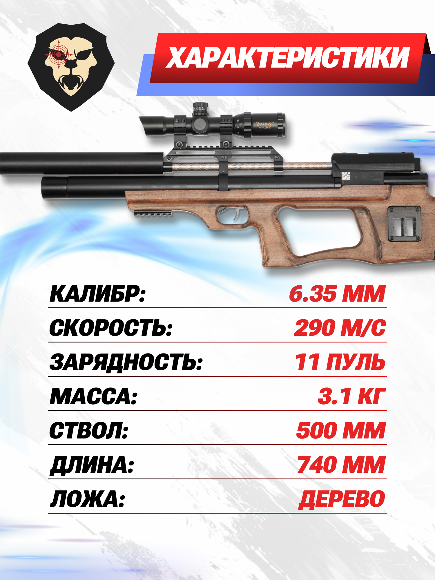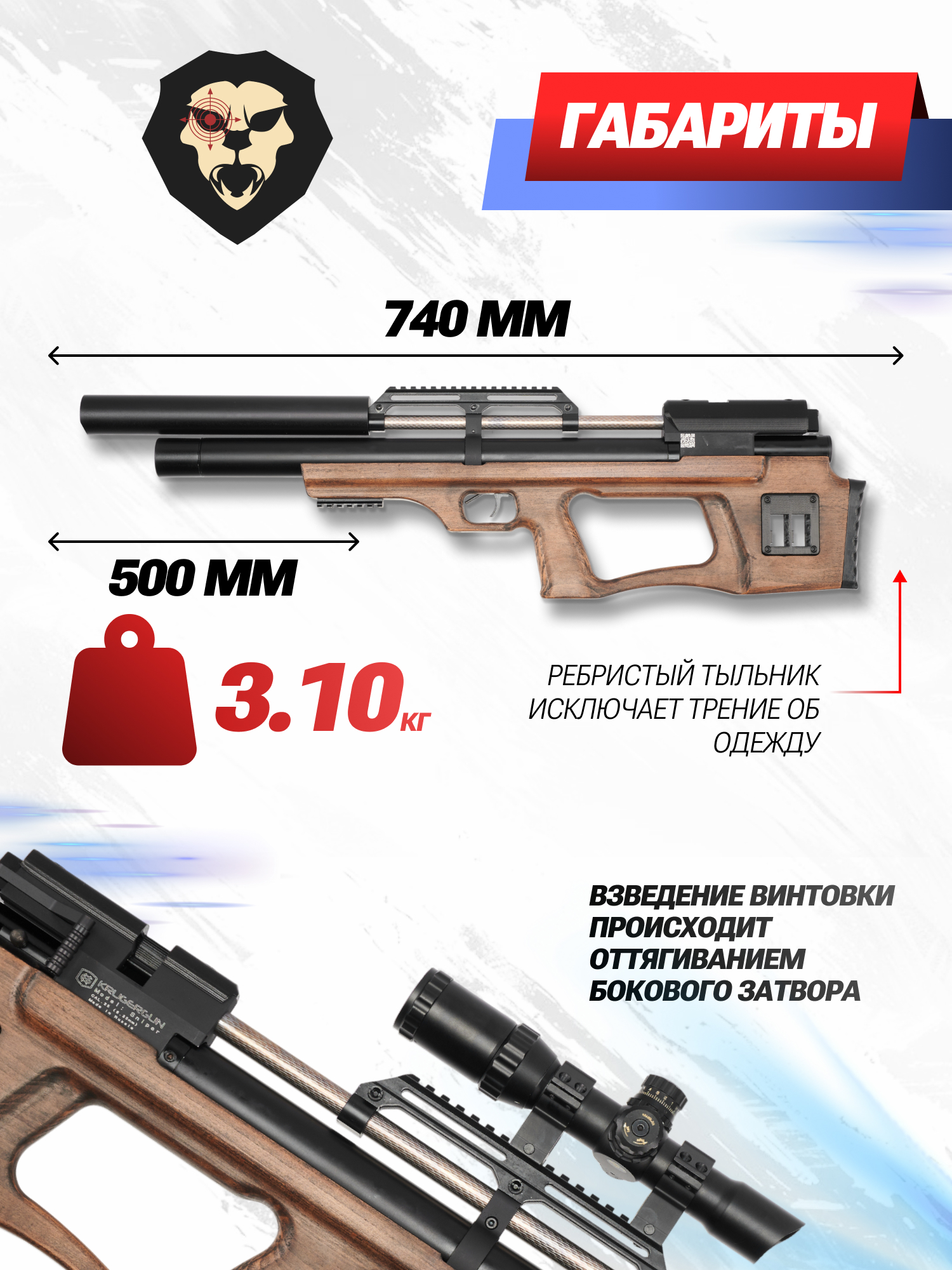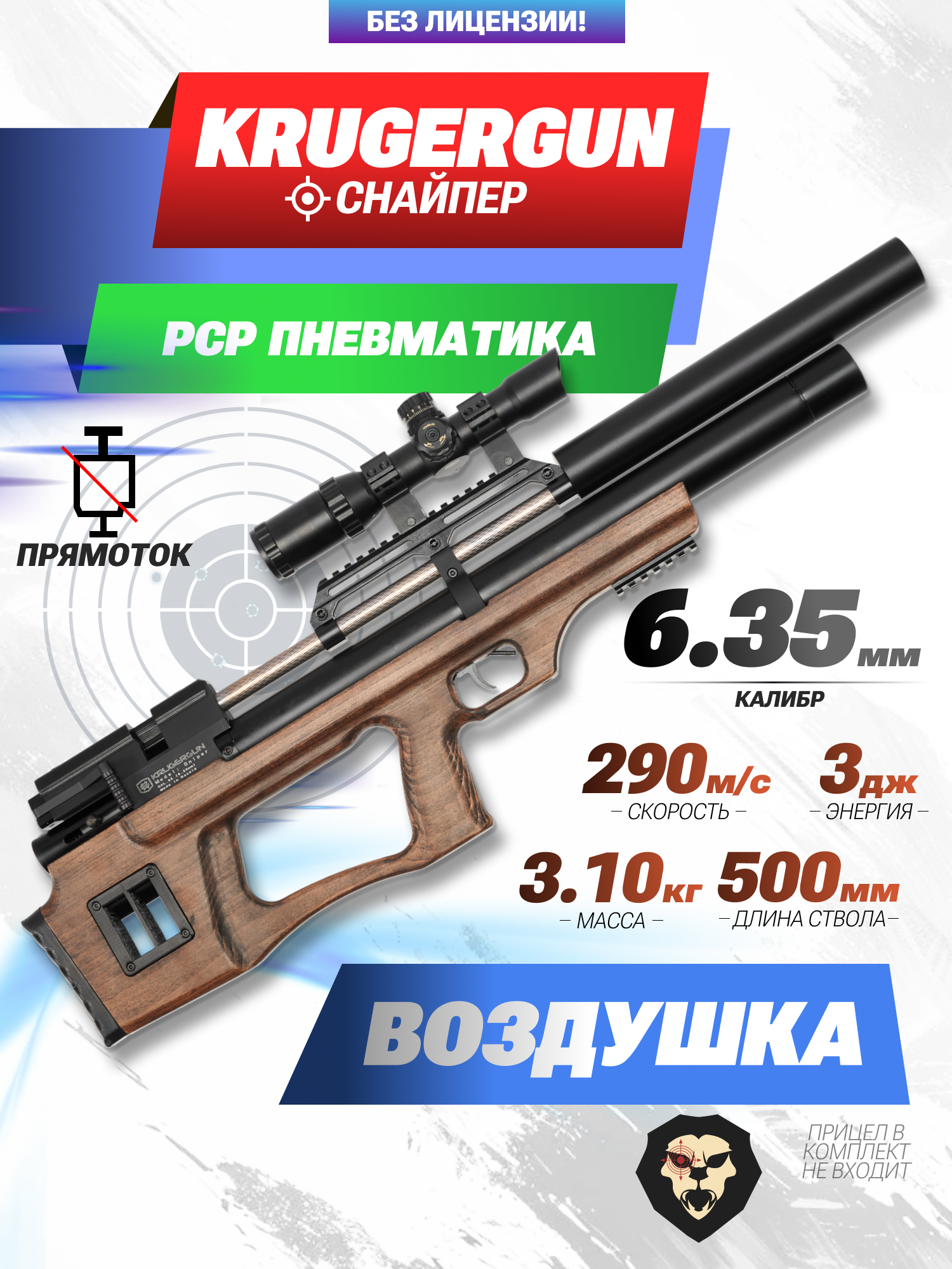 Пневматическая винтовка Krugergun Снайпер 6.35 мм Bullpup (500 мм, прямоток, дерево, резервуар 510) купить в интернет-магазине Popadiv10.