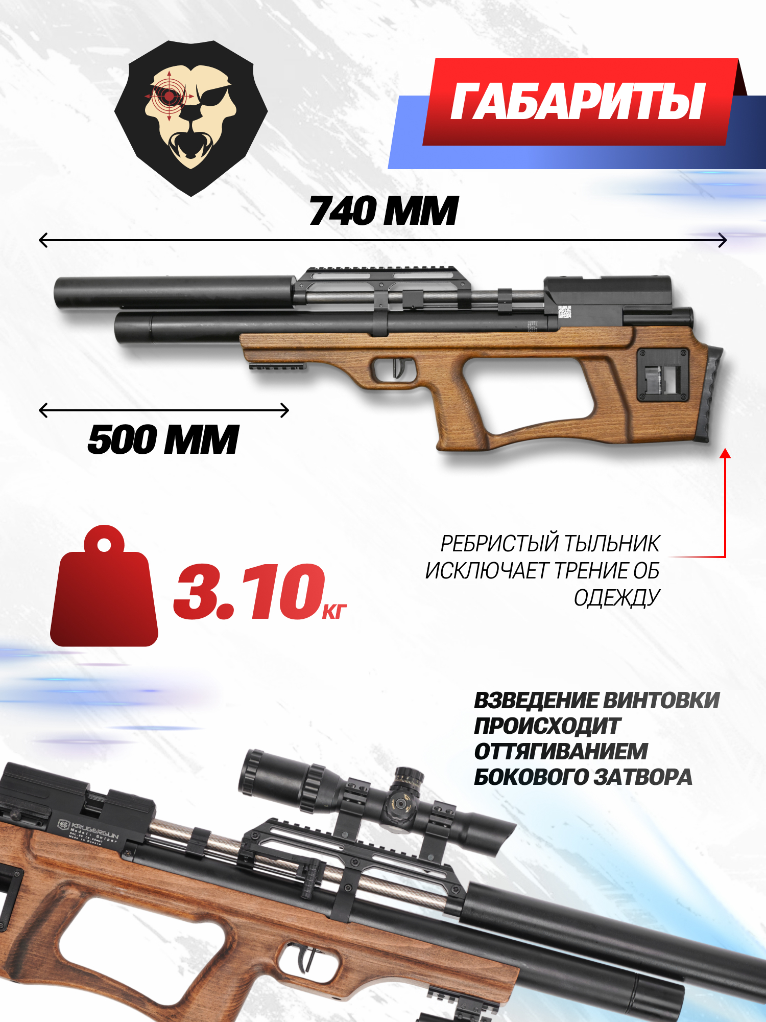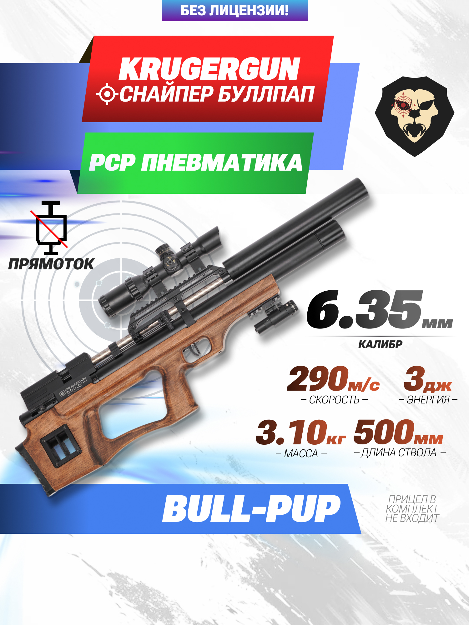 Информация о товаре "Пневматическая винтовка Krugergun Снайпер 6.35 мм Bullpup (500 мм, прямоток, взвод передний, дерево, резервуар 510)" носит ознакомительный характер, и не является публичной офертой, определяемой положениями Статьи 437 Гражданского кодекса Российской Федерации, характеристики, внешний вид, цвет и комплектация могут быть изменены производителем без уведомления.