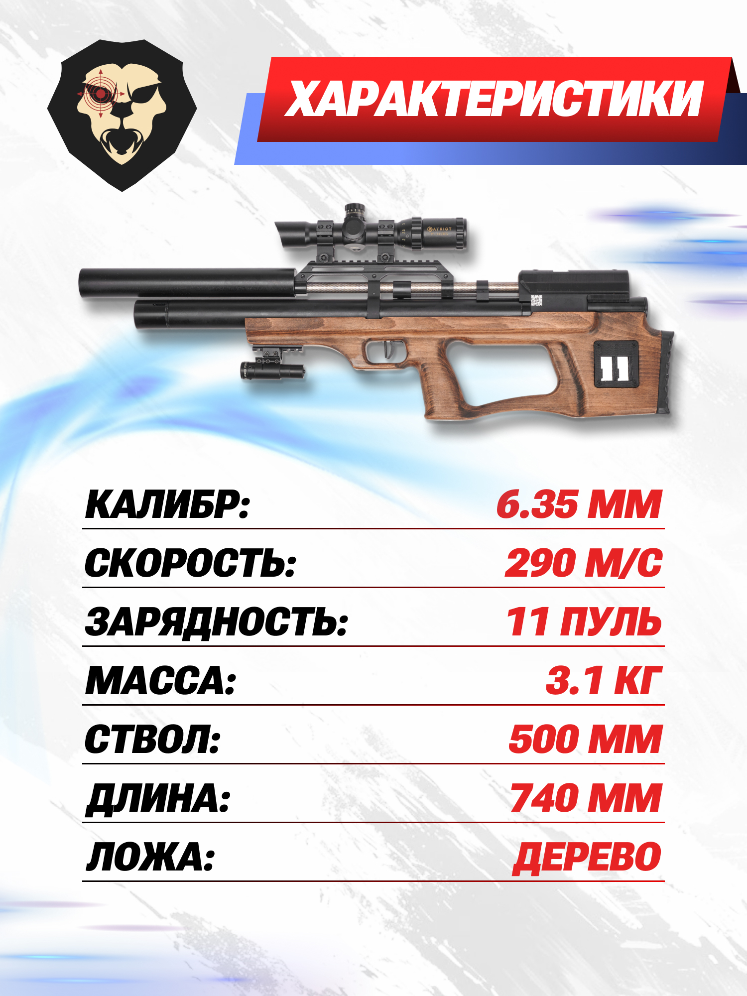 | Тип | PCP пневматика |