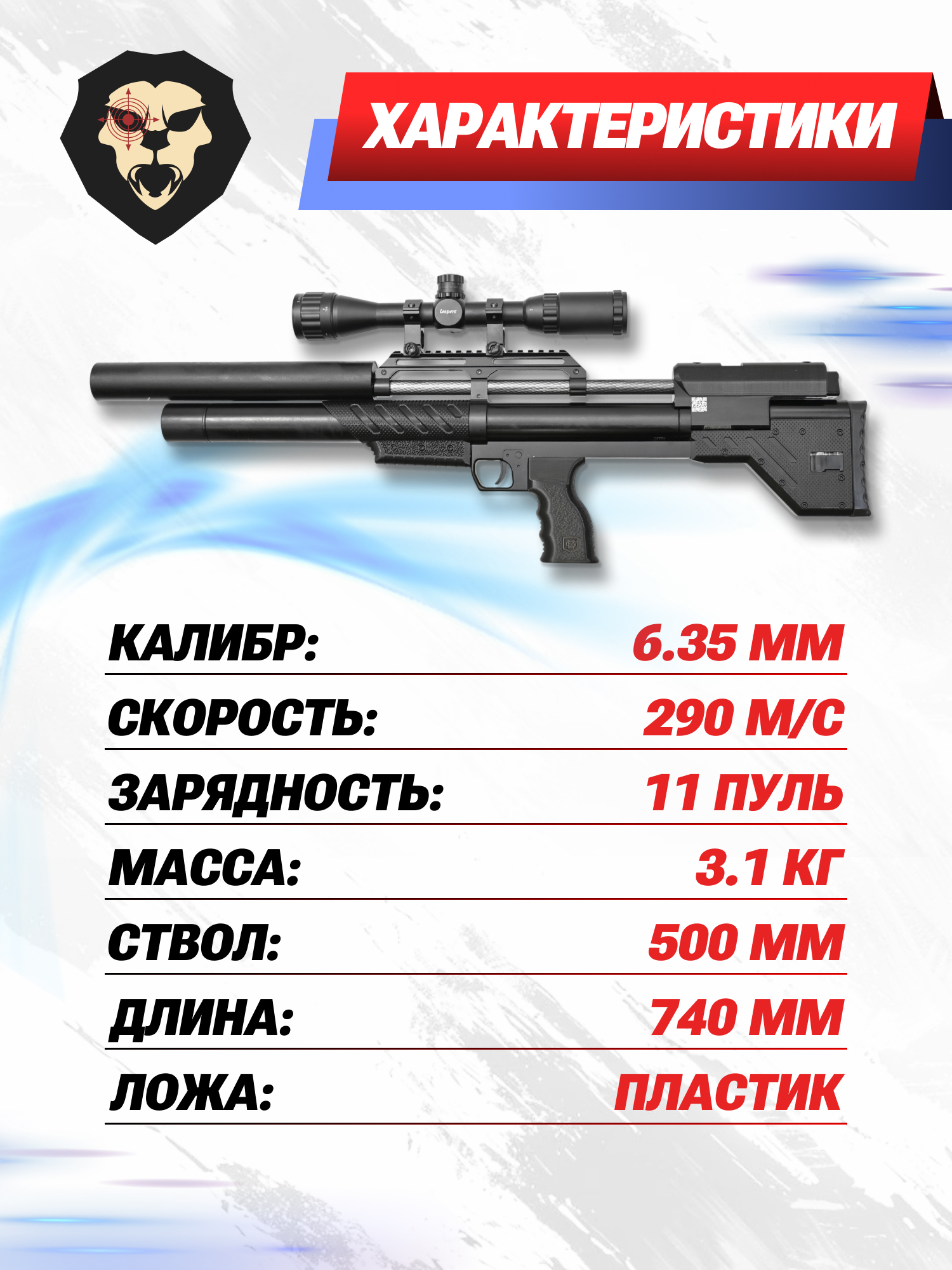 | Тип | PCP пневматика |