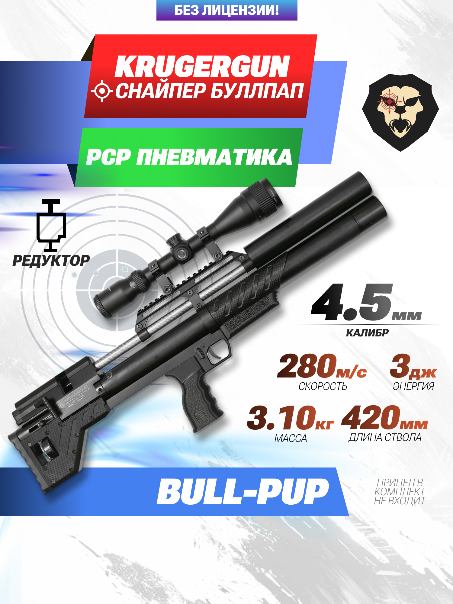 Пневматическая винтовка Krugergun Снайпер Буллпап 4.5 мм (420 мм, резервуар 510, редуктор, пластик) купить в интернет-магазине Popadiv10.