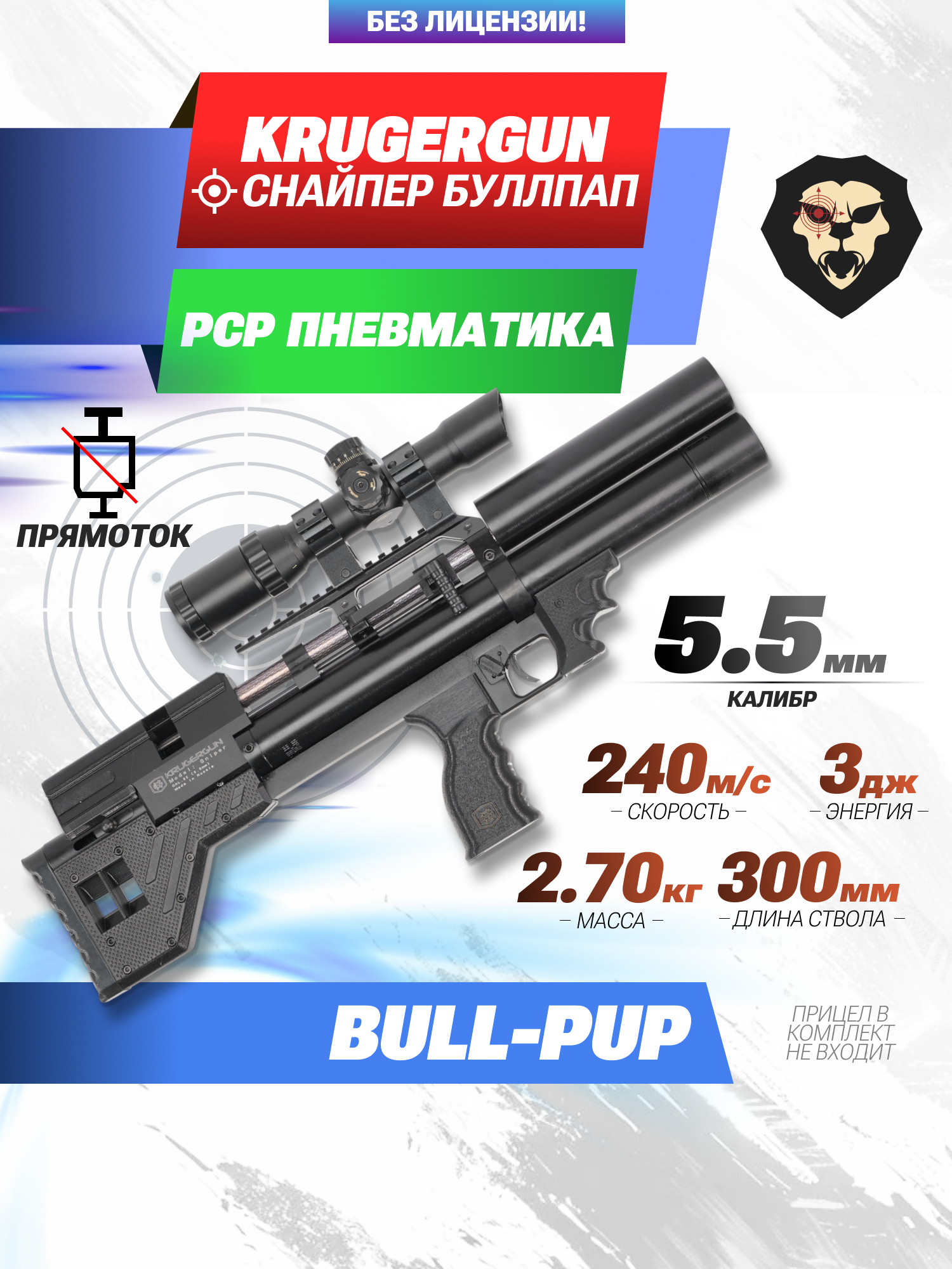 Пневматическая винтовка Krugergun Снайпер Буллпап 5.5 мм (300 мм, прямоток, передний взвод, пластиковая) купить в интернет-магазине Popadiv10.