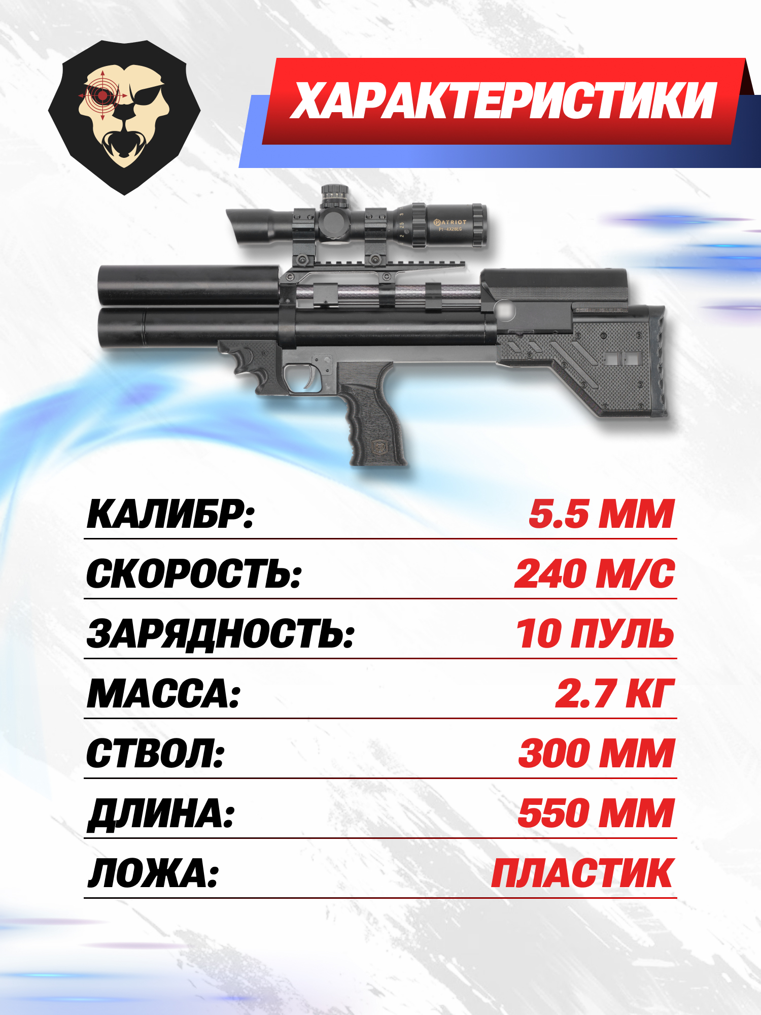 Обилие выбора позволяет среди современных пневматических PCP винтовок найти модель, которая станет подходящим оружием для стрелков разных направлений и интересов. Широкий выбор пневматических винтовок с различными характеристиками, материалами исполнения и калибром представлен в модельном ряду винтовок KrugerGun Снайпер буллпап 5.5 мм. Среди изделий компании Крюгер каждый стрелок подберет себе нужную модель, необходимый тюнинг и аксессуары для пневматики.