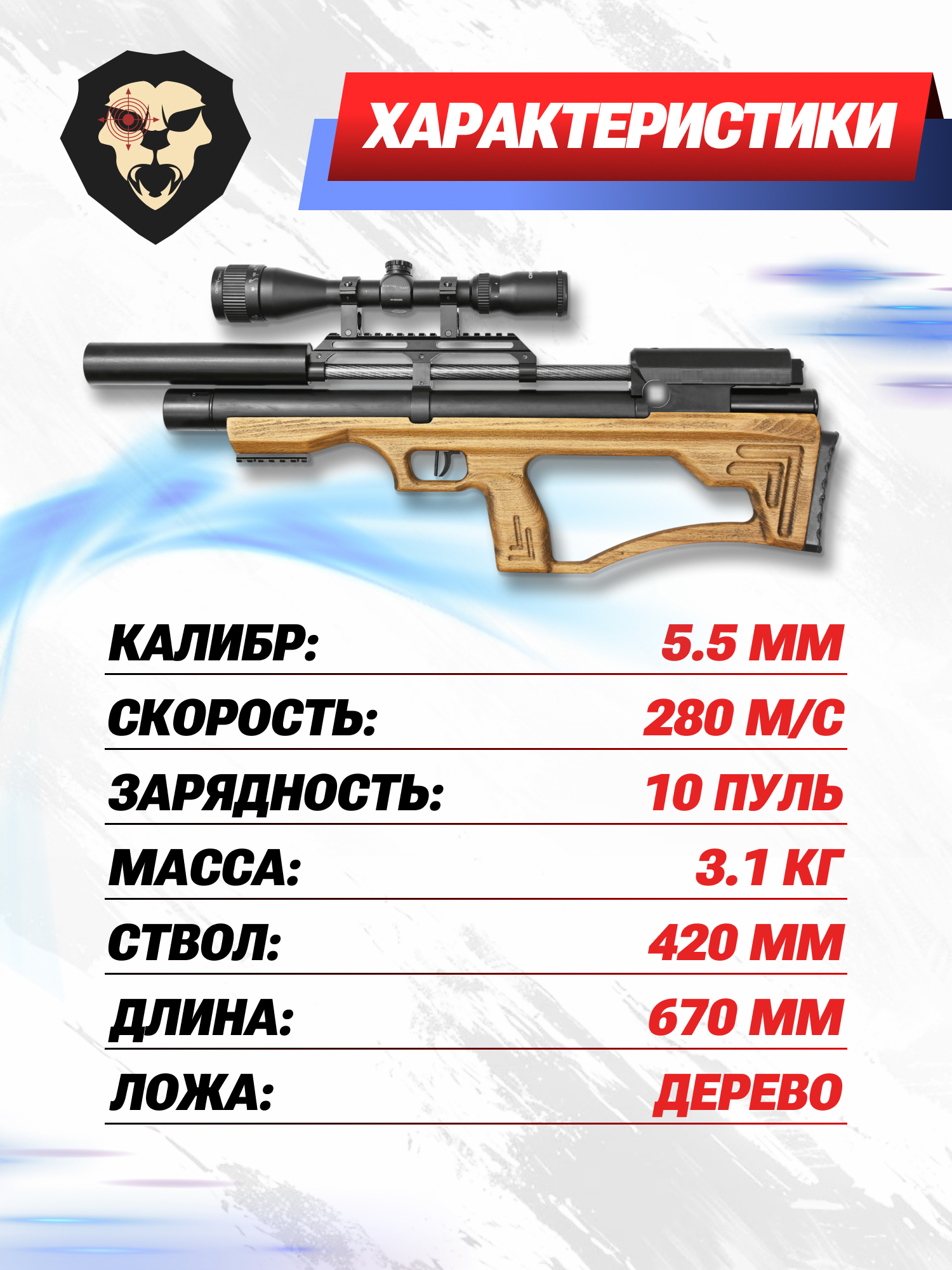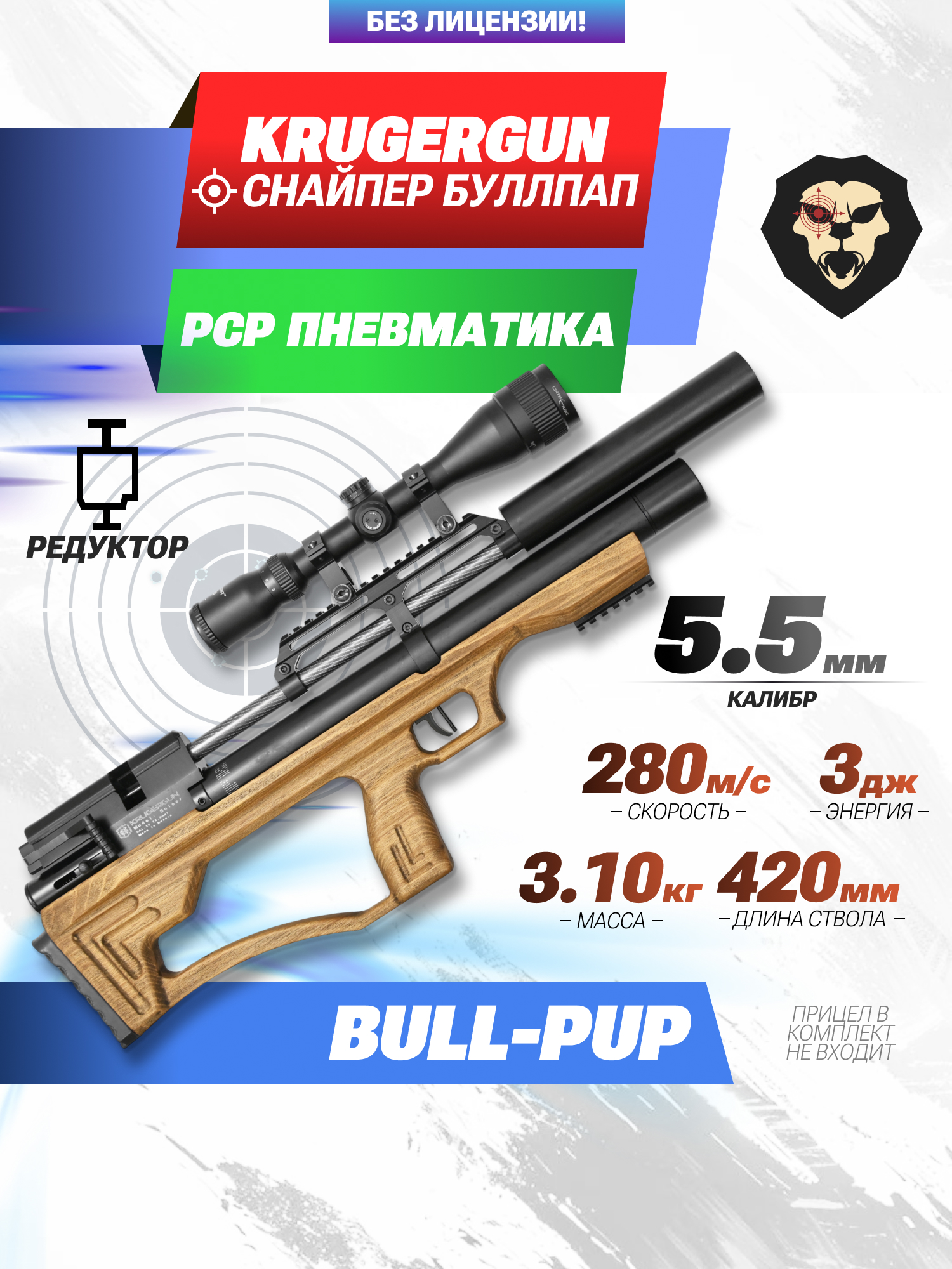 Пневматическая винтовка Krugergun Снайпер Буллпап 5.5 мм (420 мм, резервуар 430, редуктор, дерево L) купить в интернет-магазине Popadiv10.