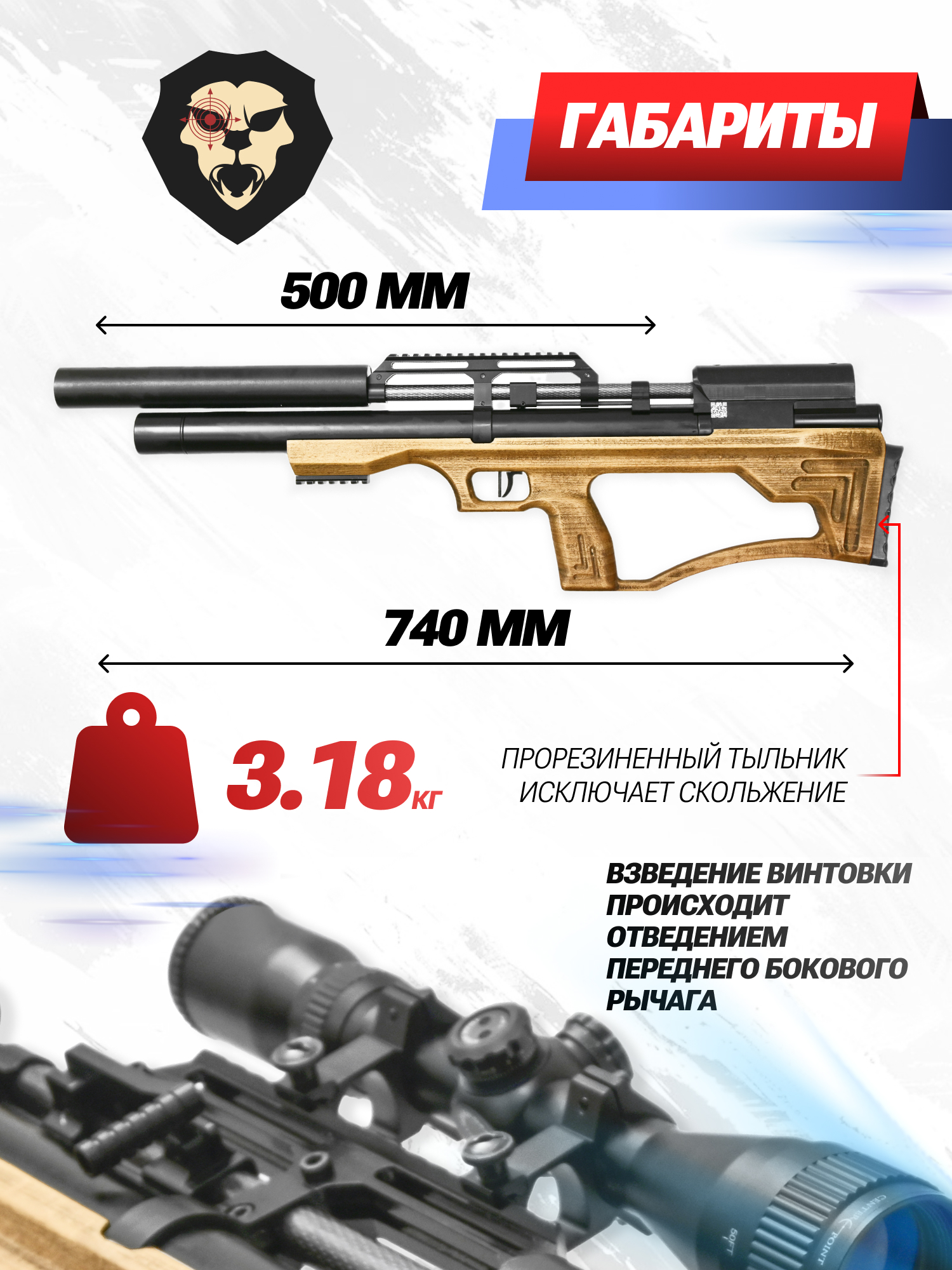 | Комплектация | Винтовка, упаковка, заправочный штуцер, магазин, РТИ, краткая документация, копия сертификата (по запросу покупателя) |