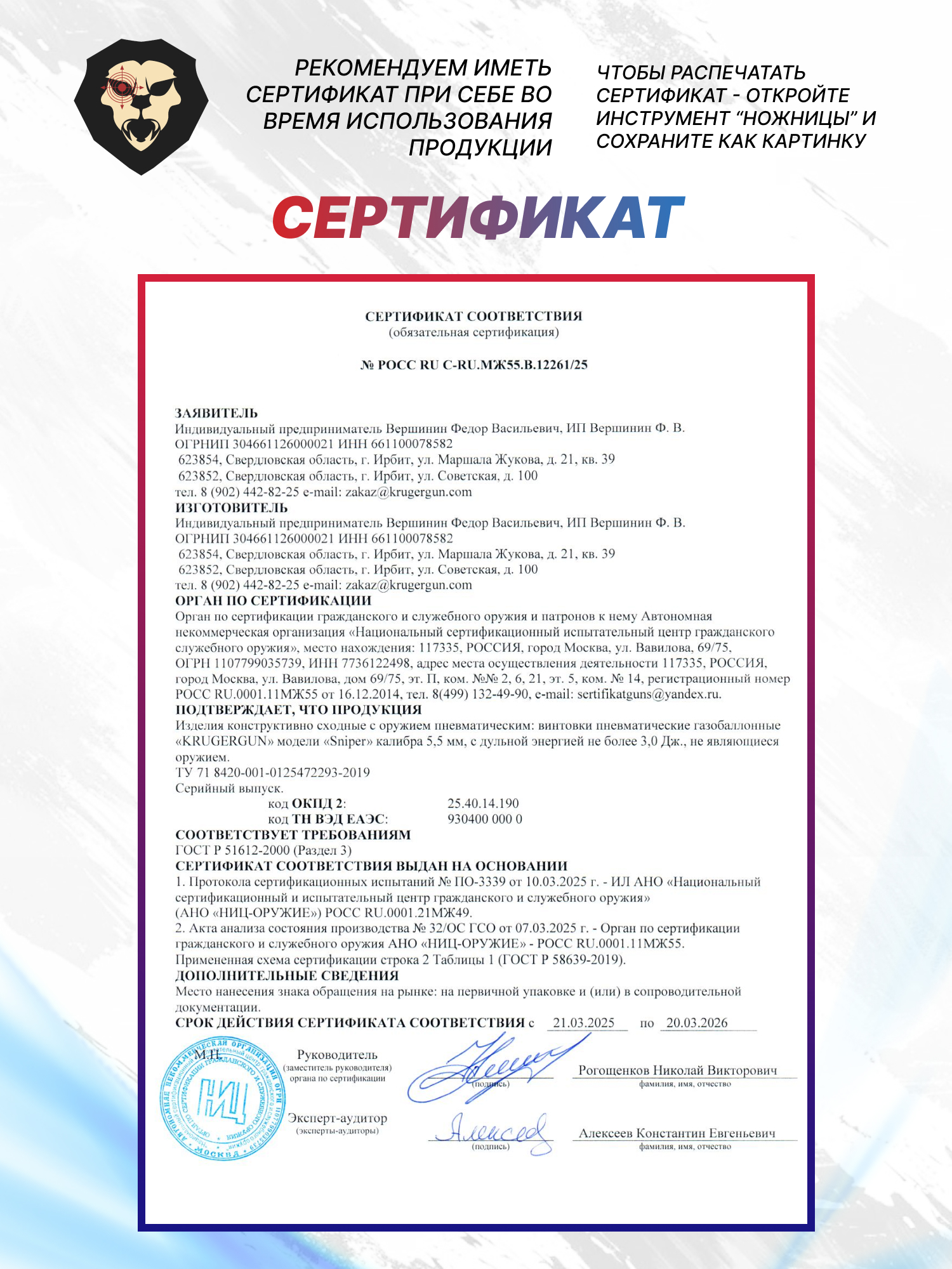 Пневматика Крюгерган 5.5 продается по факту предоставления паспорта — иные разрешения для ее эксплуатации не потребуются.