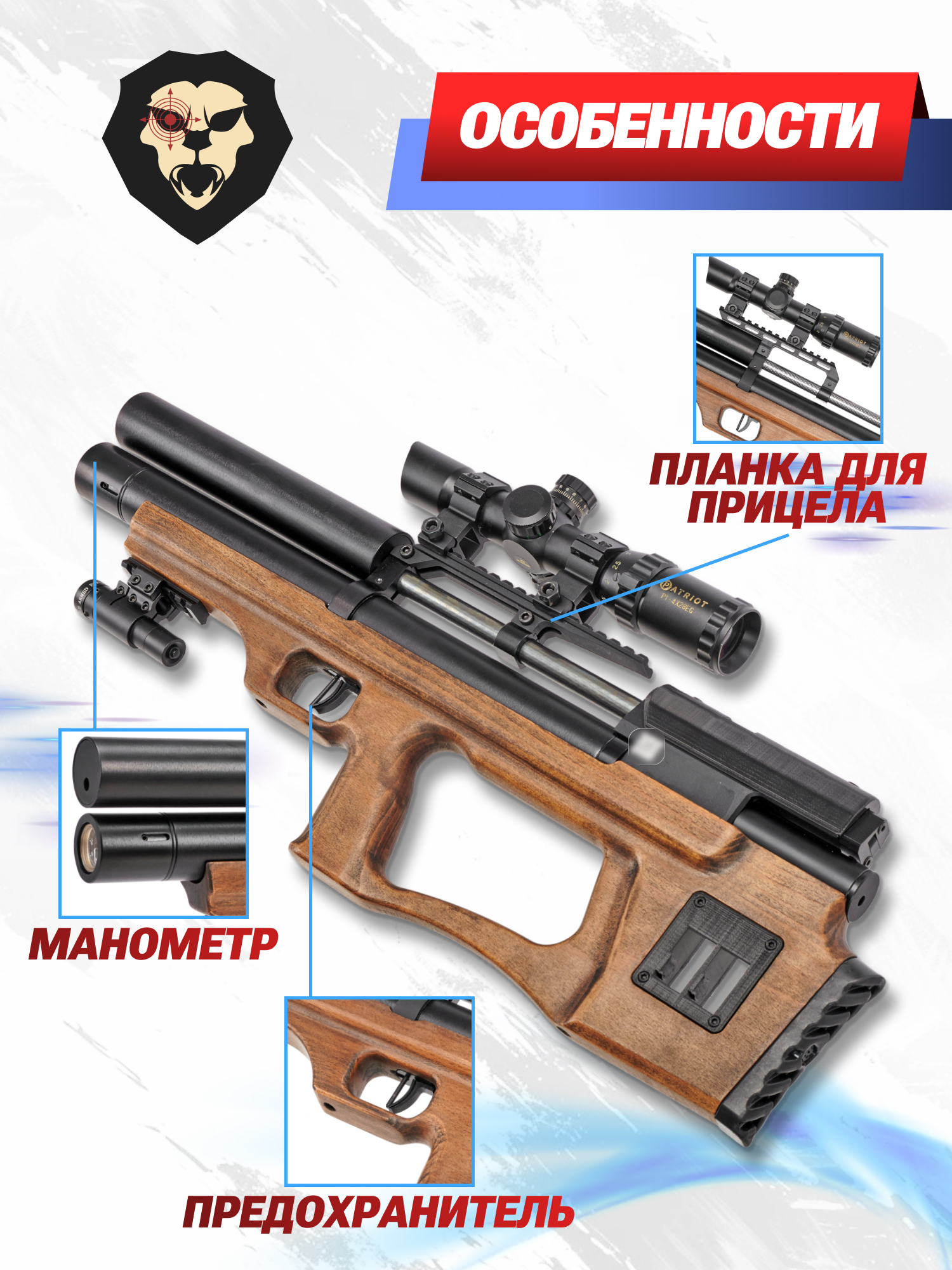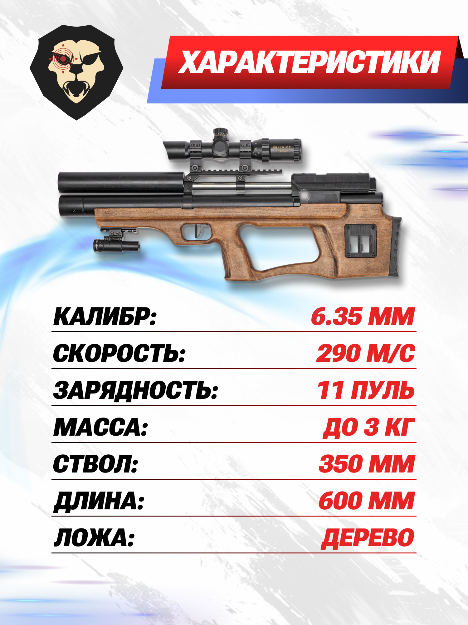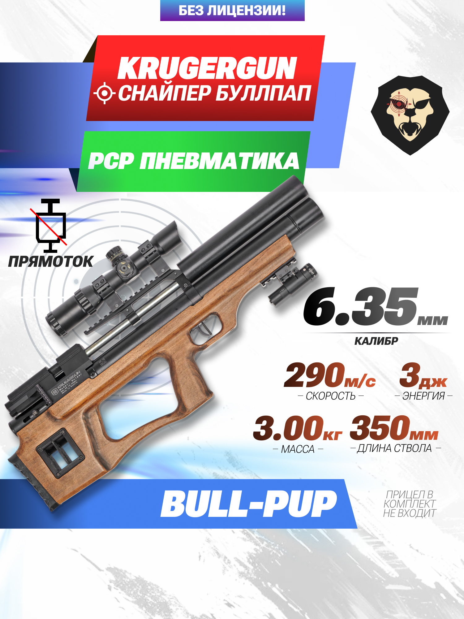Пневматическая винтовка Krugergun Снайпер Буллпап 6.35 мм (350 мм, прямоток, резервуар 430, дерево) купить в интернет-магазине Popadiv10.