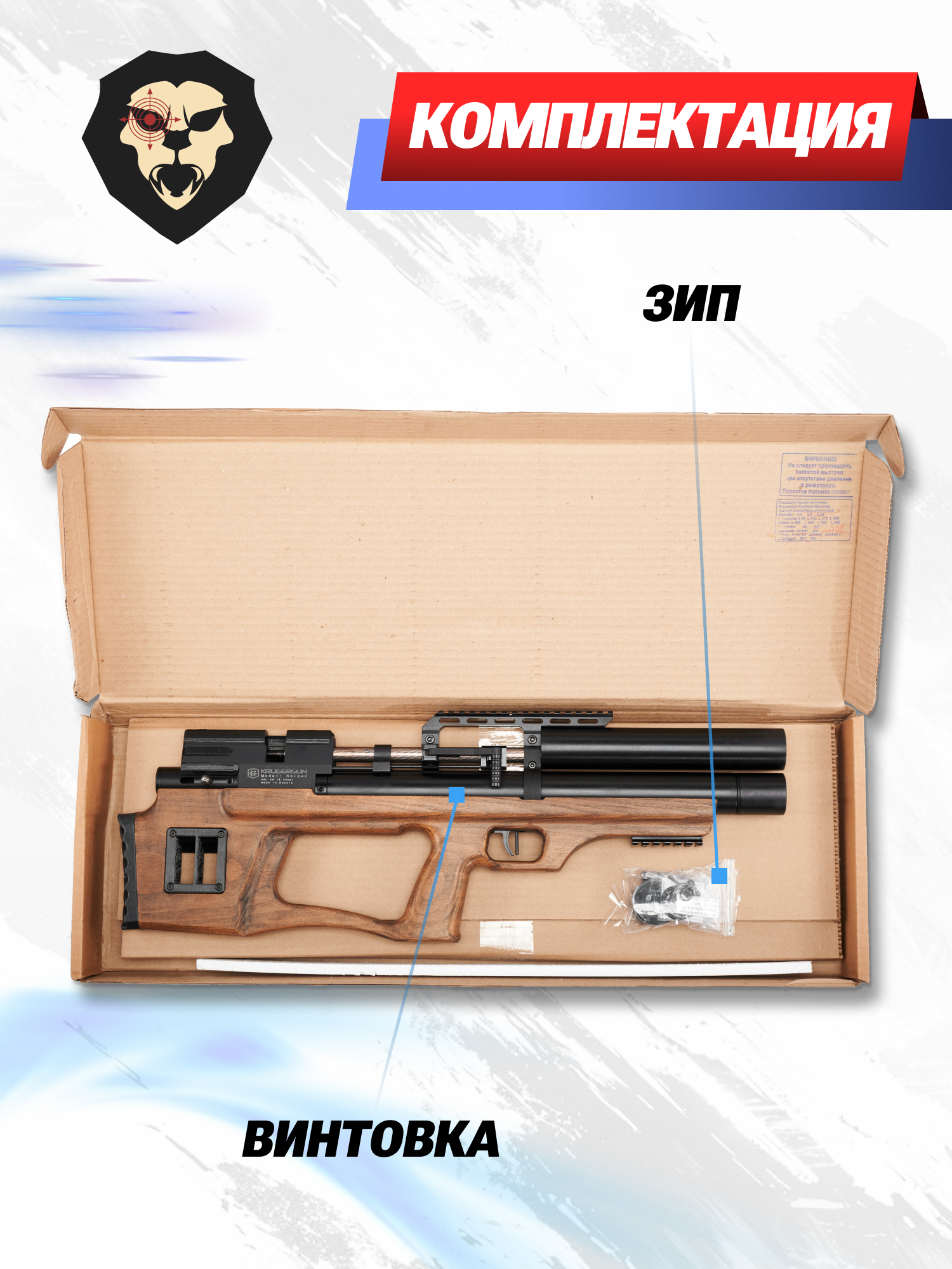 | Комплектация | Винтовка, магазин, комплект уплотнителей, упаковка, заправочный штуцер, краткая документация, копия сертификата (по запросу покупателя) |