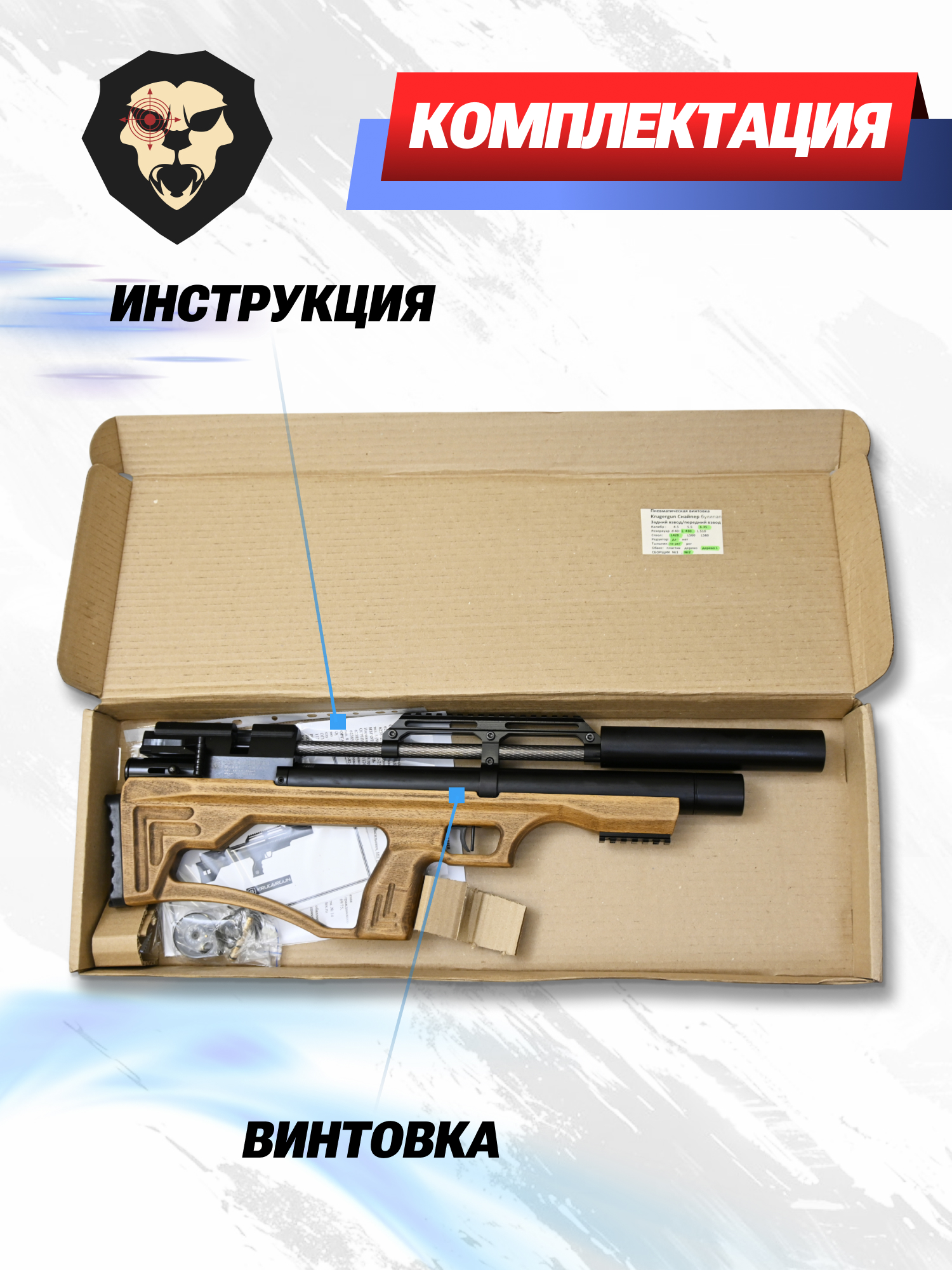 Информация о товаре "Пневматическая винтовка Krugergun Снайпер Буллпап 6.35 мм (420 мм, резервуар 430, редуктор, дерево L)" носит ознакомительный характер, и не является публичной офертой, определяемой положениями Статьи 437 Гражданского кодекса Российской Федерации, характеристики, внешний вид, цвет и комплектация могут быть изменены производителем без уведомления.