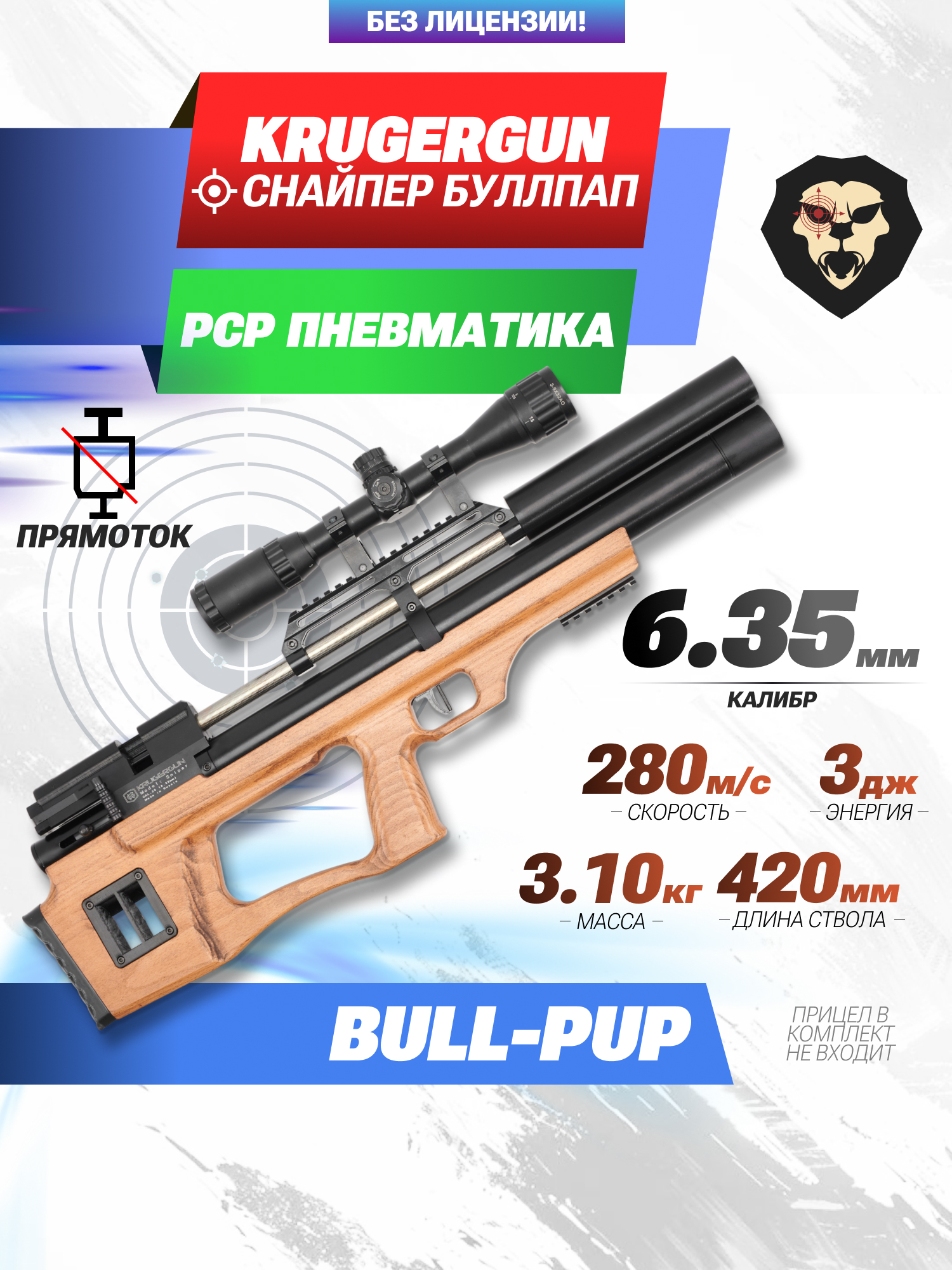 Пневматическая винтовка Krugergun Снайпер Буллпап 6.35 мм (420 мм, резервуар 510, прямоток, дерево) купить в интернет-магазине Popadiv10.