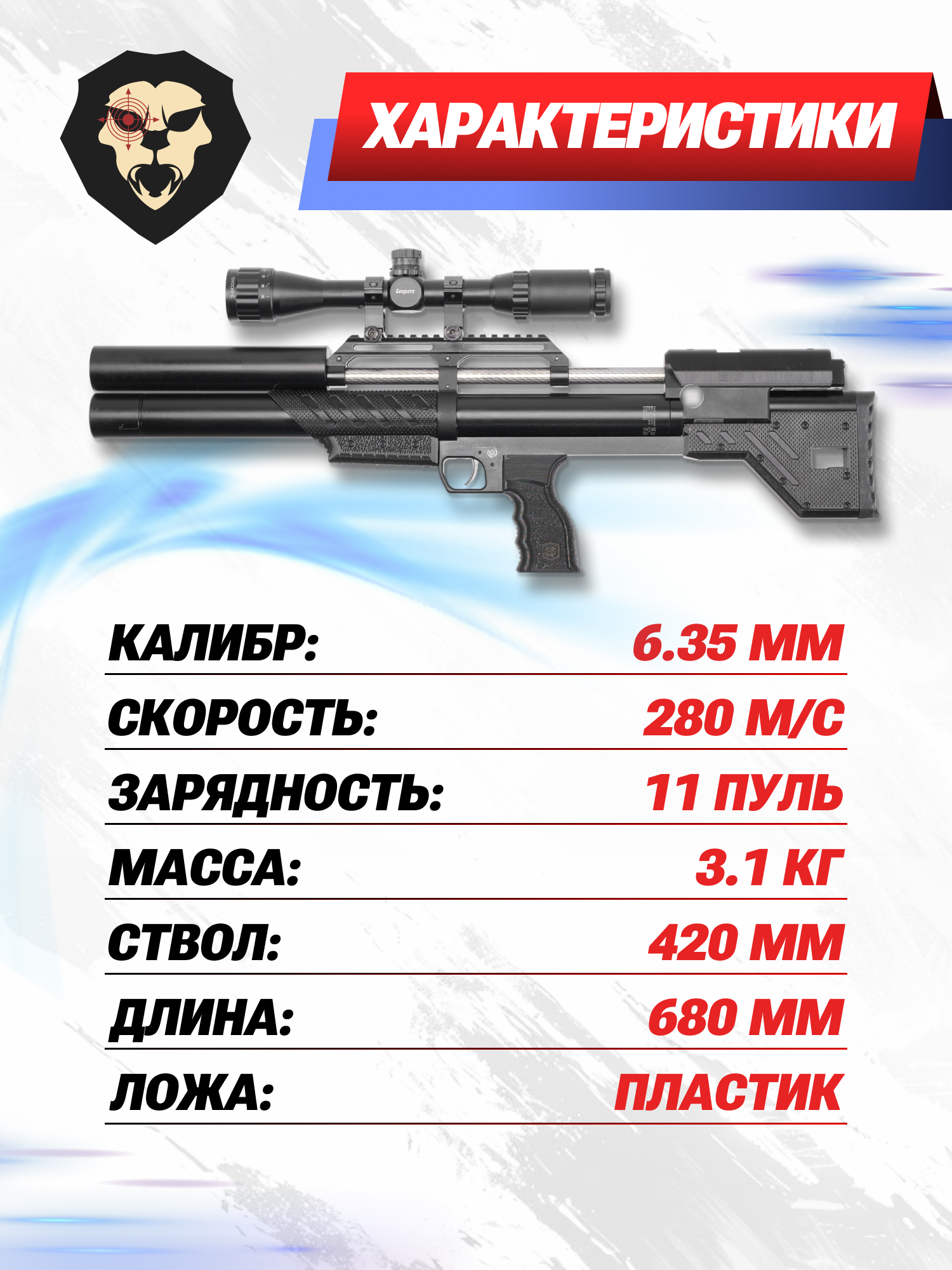 | Тип | PCP пневматика |