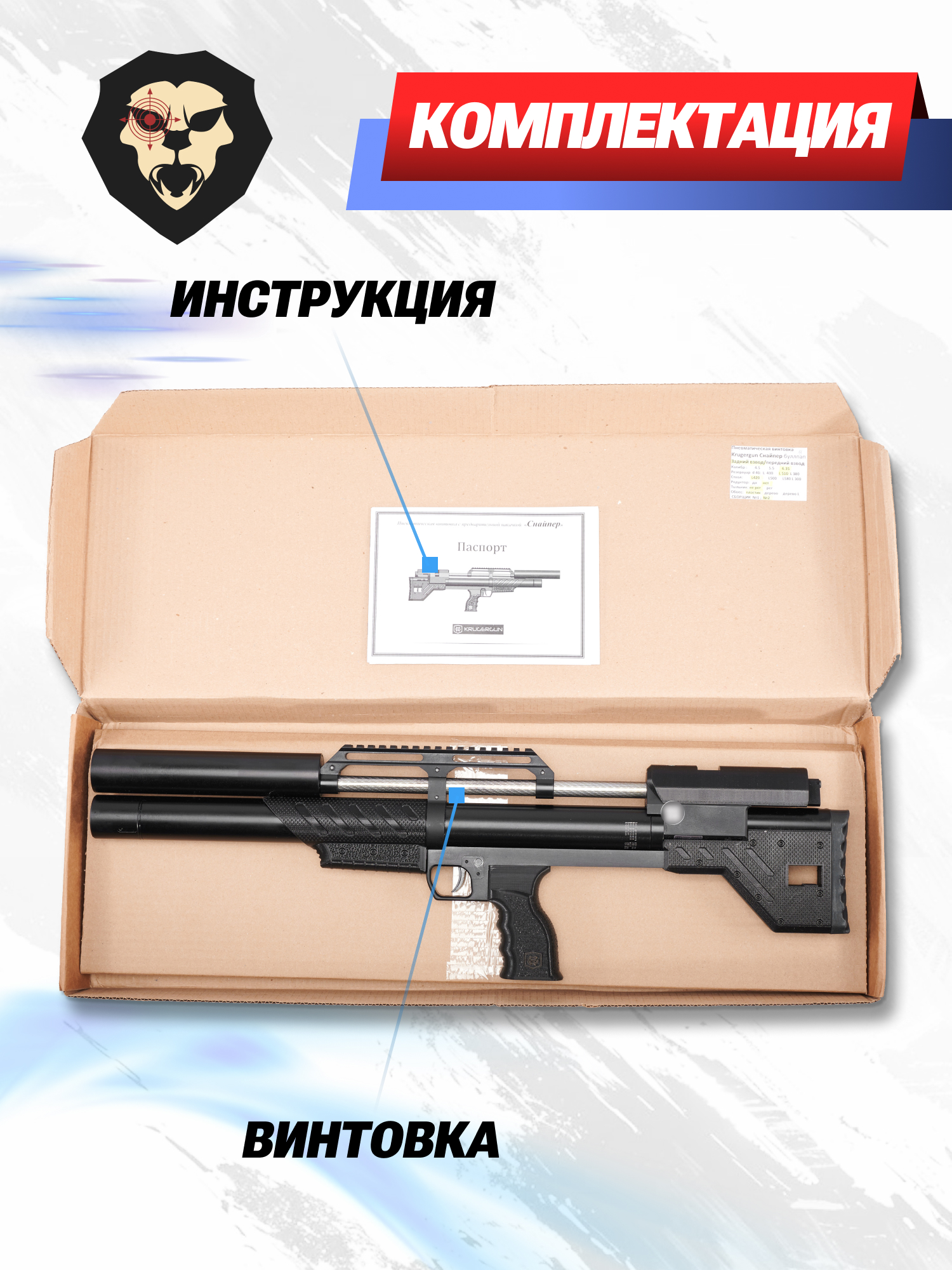 | Комплектация | Винтовка, упаковка, заправочный штуцер, РТИ, магазин, краткая документация, копия сертификата (по запросу покупателя) |