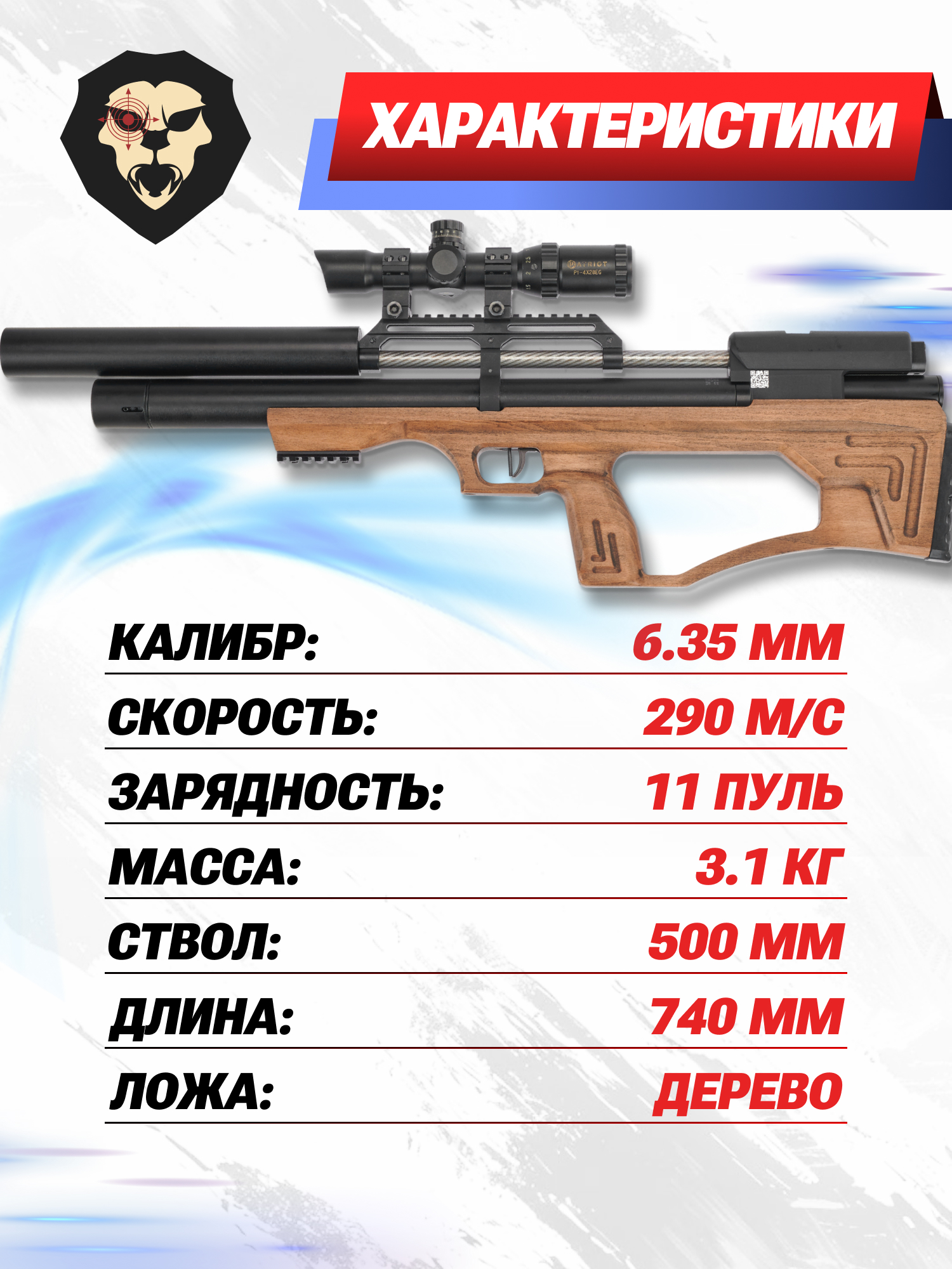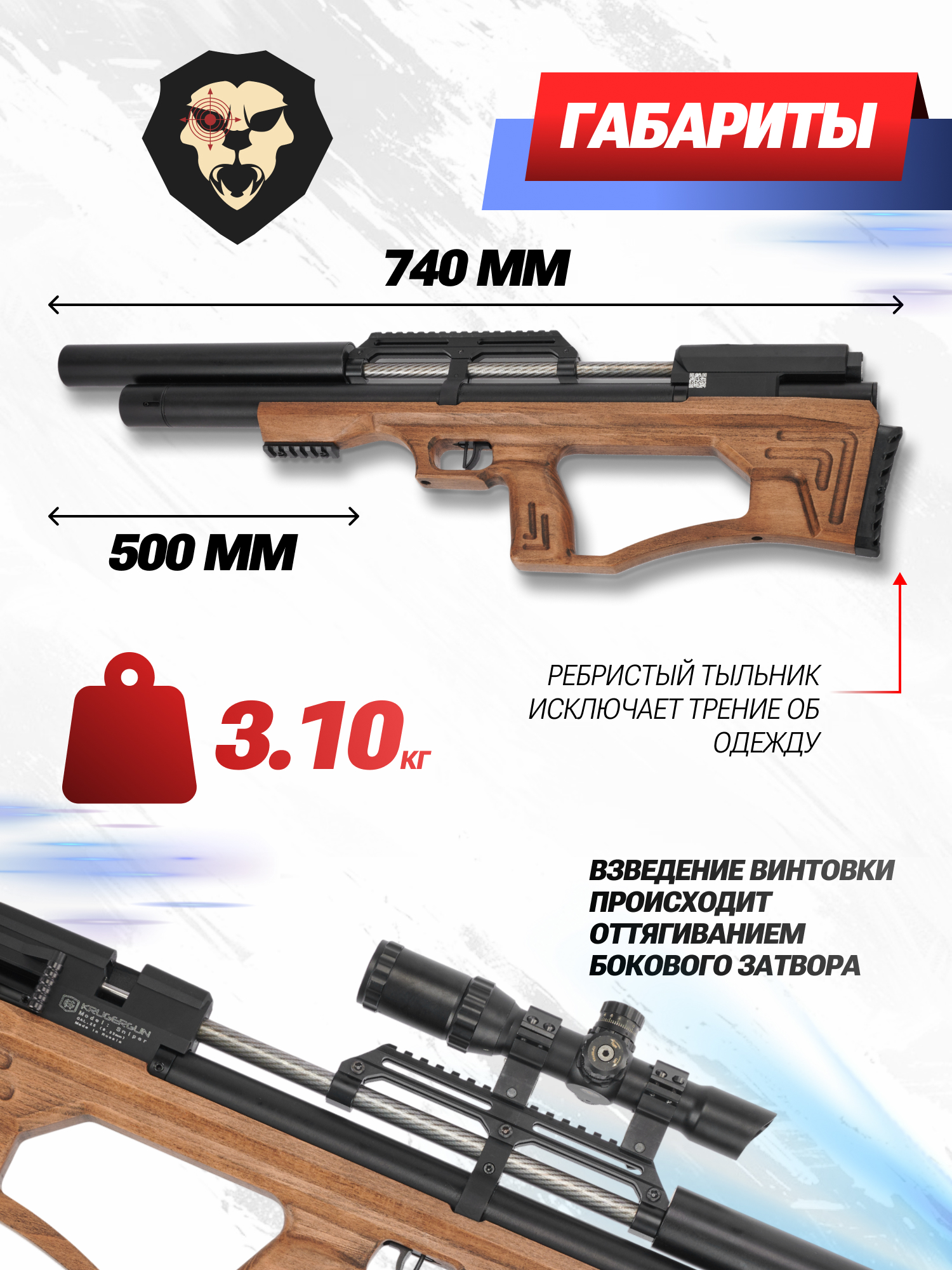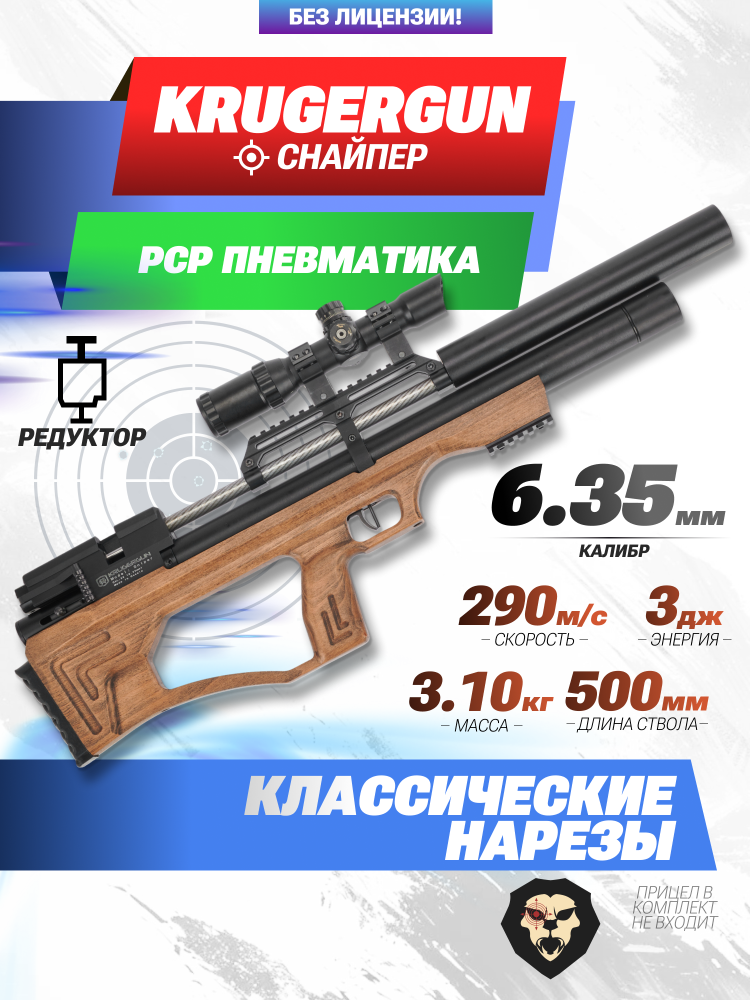 Пневматическая винтовка Krugergun Снайпер Буллпап 6.35 мм (500 мм, резервуар 510, передний взвод, редуктор, дерево L) купить в интернет-магазине Popadiv10.
