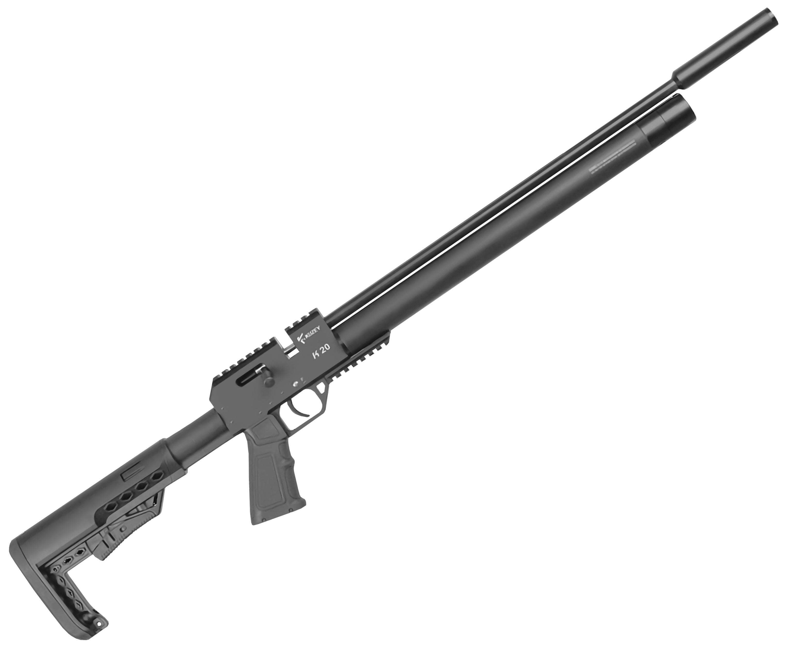 PCP Kuzey K20 выпускается в ходовых калибрах - обозреваемая вариация заряжается воланчиковыми пулями 6.35 мм. Потенциальная скорость вылета последних может в зарубежных винтовках достигать 300 метров в секунду. Такой разгон является теоретическим и не реализуем на практике в заводской конфигурации пневматики для рынка РФ, так как продукция бренда приходит в страну с разрешенной мощностью не больше 3 Дж.
