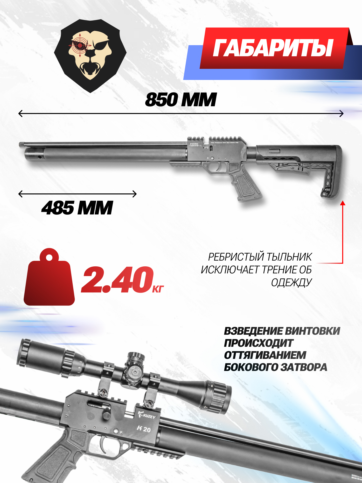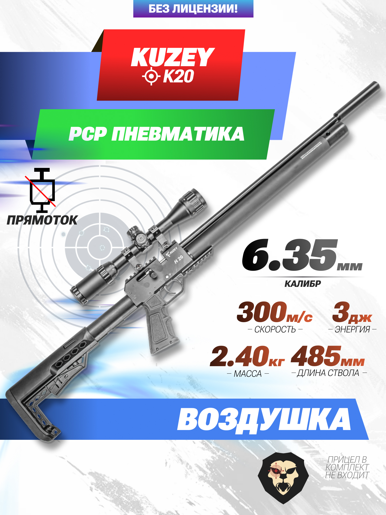Информация о товаре "Пневматическая винтовка Kuzey K20 6.35 мм (прямоток)" носит ознакомительный характер, и не является публичной офертой, определяемой положениями Статьи 437 Гражданского кодекса Российской Федерации, характеристики, внешний вид, цвет и комплектация могут быть изменены производителем без уведомления.