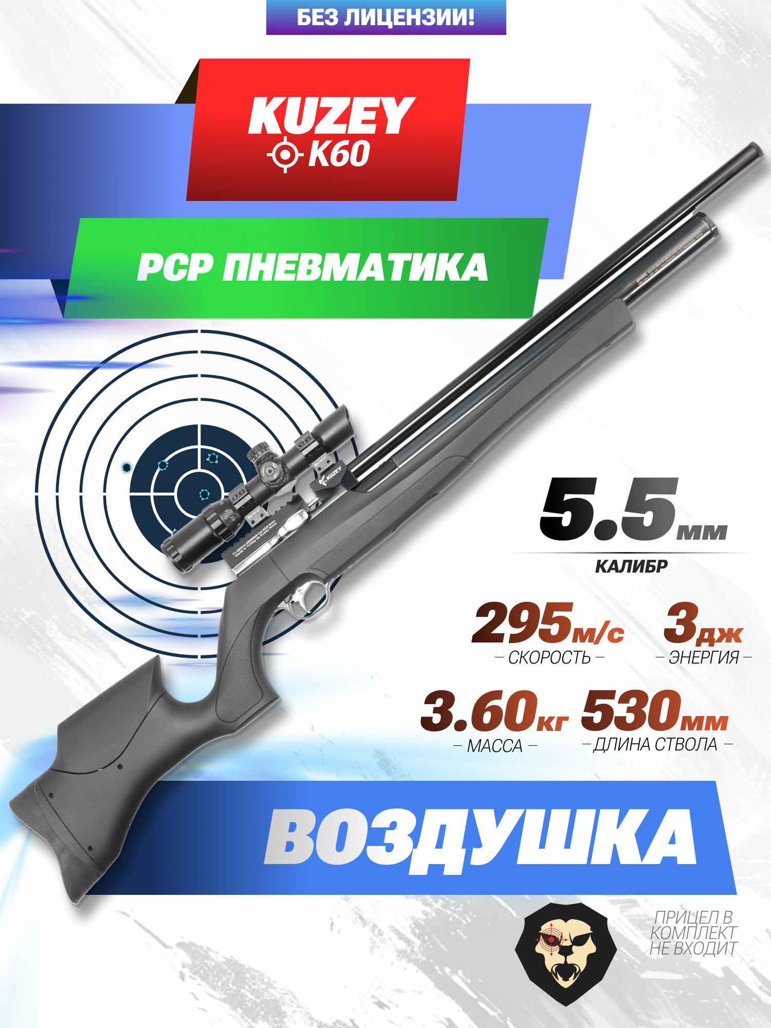 Информация о товаре "Пневматическая винтовка Kuzey K60 5.5 мм (пластик, ПСП)" носит ознакомительный характер, и не является публичной офертой, определяемой положениями Статьи 437 Гражданского кодекса Российской Федерации, характеристики, внешний вид, цвет и комплектация могут быть изменены производителем без уведомления.