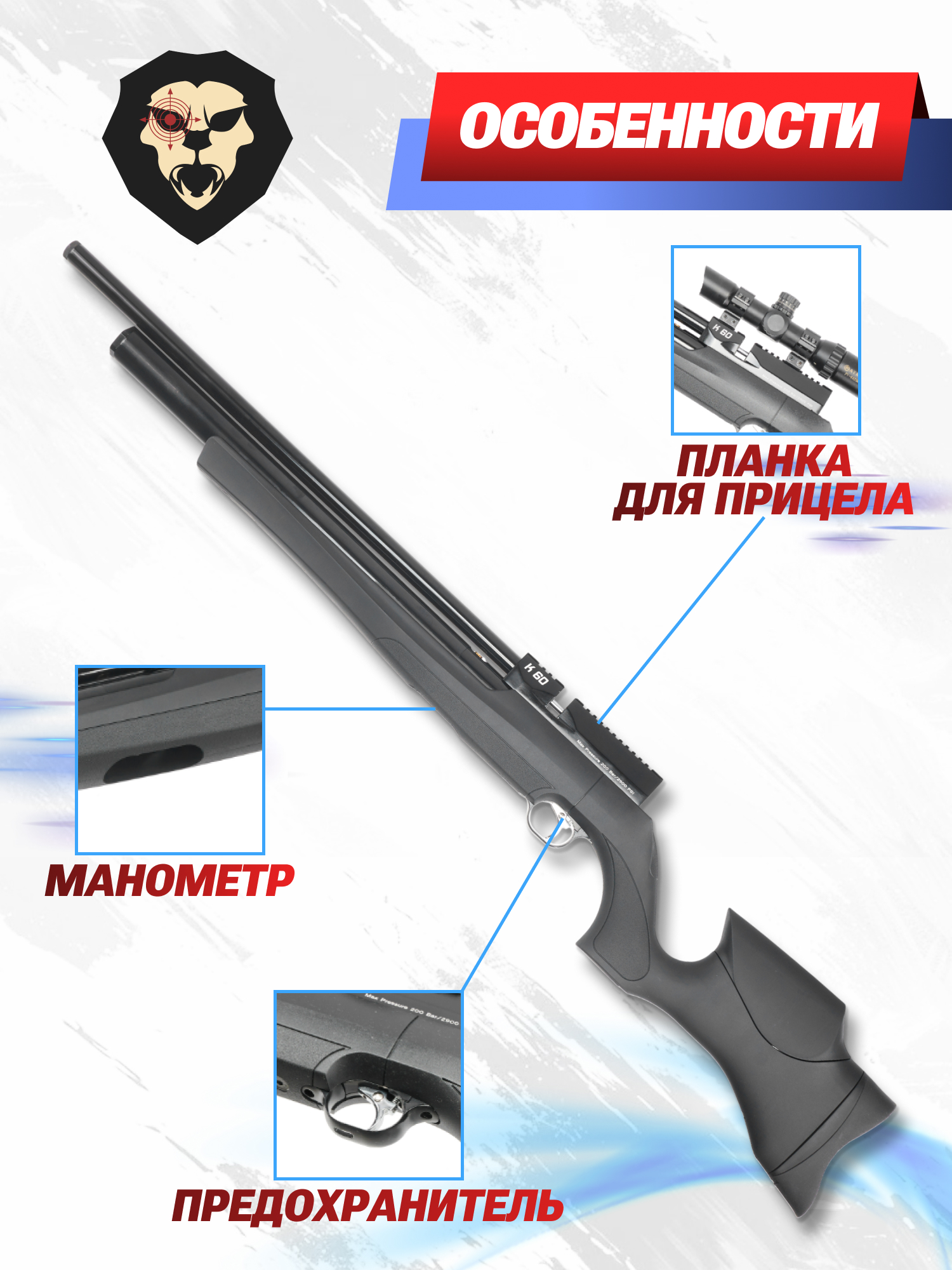 Современные образцы гражданских пневматических винтовок характеризуются как мощное оружие, применяемое стрелками не только для развлекательных, но профессиональных целей, спортивных дисциплин, а также охоты. К перечню производителей, специализирующихся на подобной продукции, относится турецкая фирма Kuzey. Новинкой в ассортименте иностранного бренда стала линейка PCP пневматики K60 в исполнении с пластиковой.