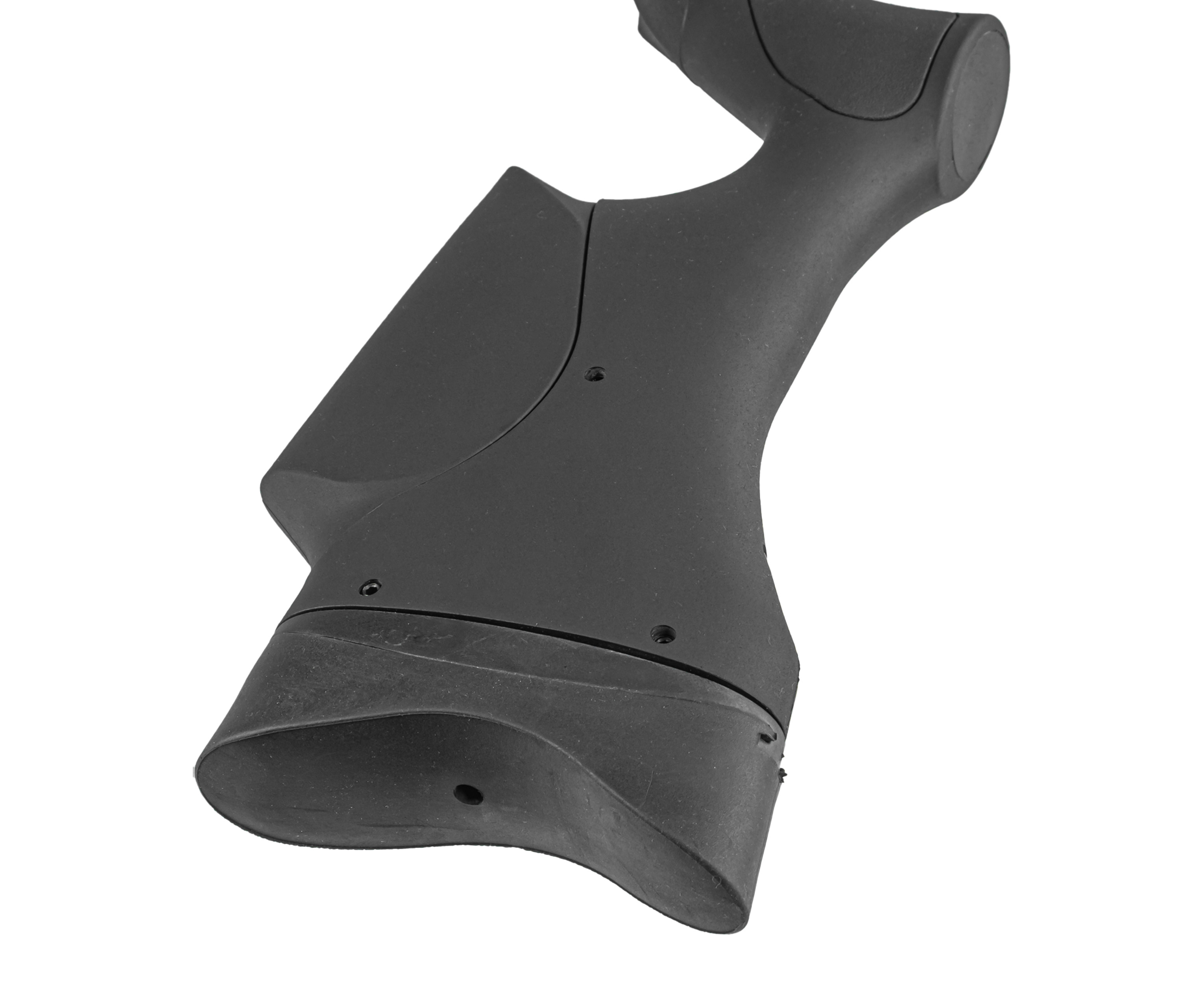 Отдельно требуется отметить применение полимерного ложа с противоскользящей рельефной поверхностью в области удержания оружия. Такой материал позволил изготовителю добиться массы конструкции не больше 3.6 килограммов при полном габарите обозреваемой винтовки в 1050 миллиметров. На эргономику и удобство обращения с пневматикой также влияет наличие прорезиненного затыльника, позволяющего сформировать надежную и комфортную вкладку.
