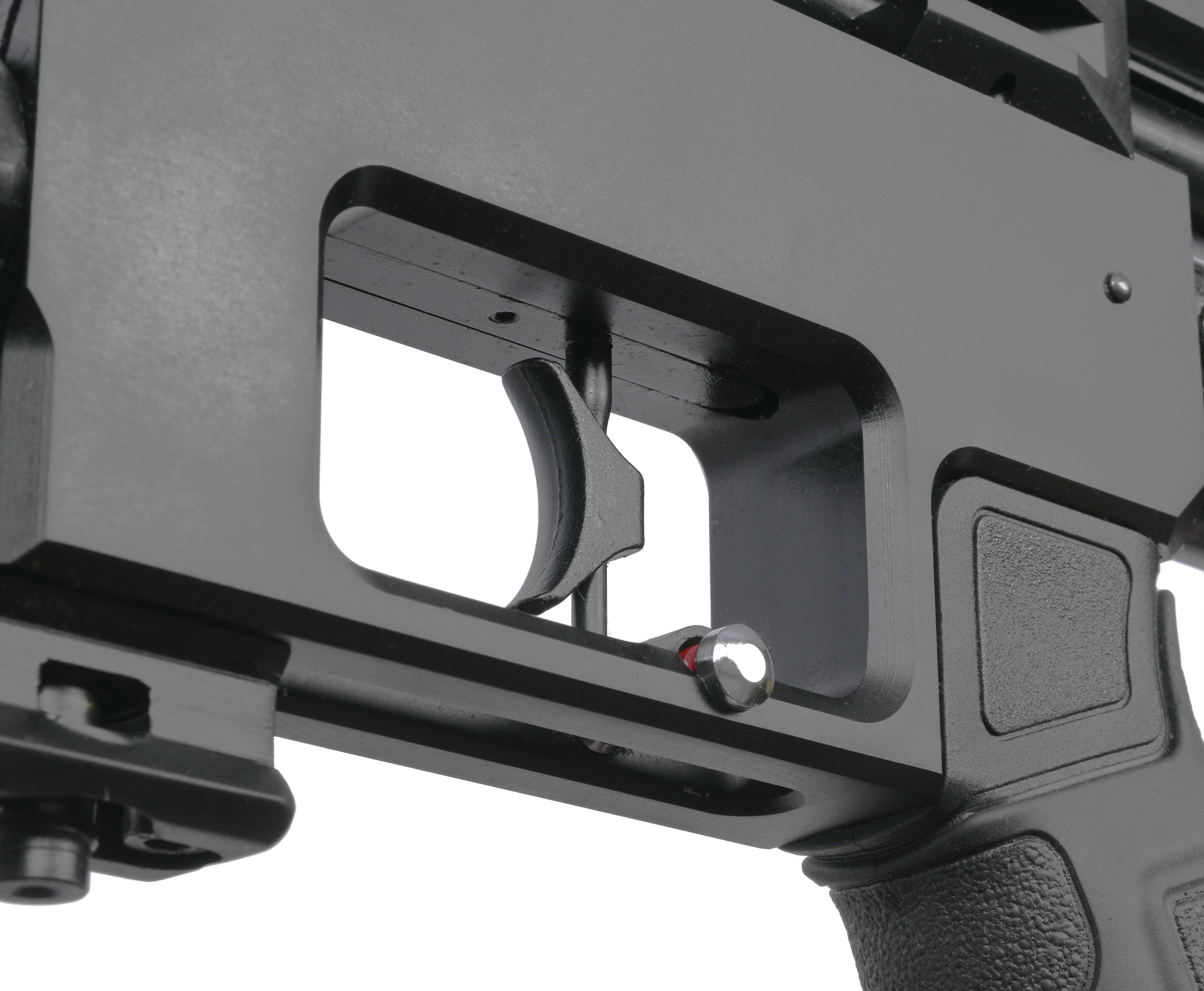 Все органы управления сосредоточены под рукой - так рычаг взведения находится над скобой. Из особенностей также стоит выделить две посадочные рельсы Weaver сверху и снизу - они служат для размещения снайперского прицела и предпочитаемого тактического обвеса, будь то сошки или ЛЦУ с фонарем. Кроме прочего, в комплектацию входит кейс для хранения и транспортировки изделия.