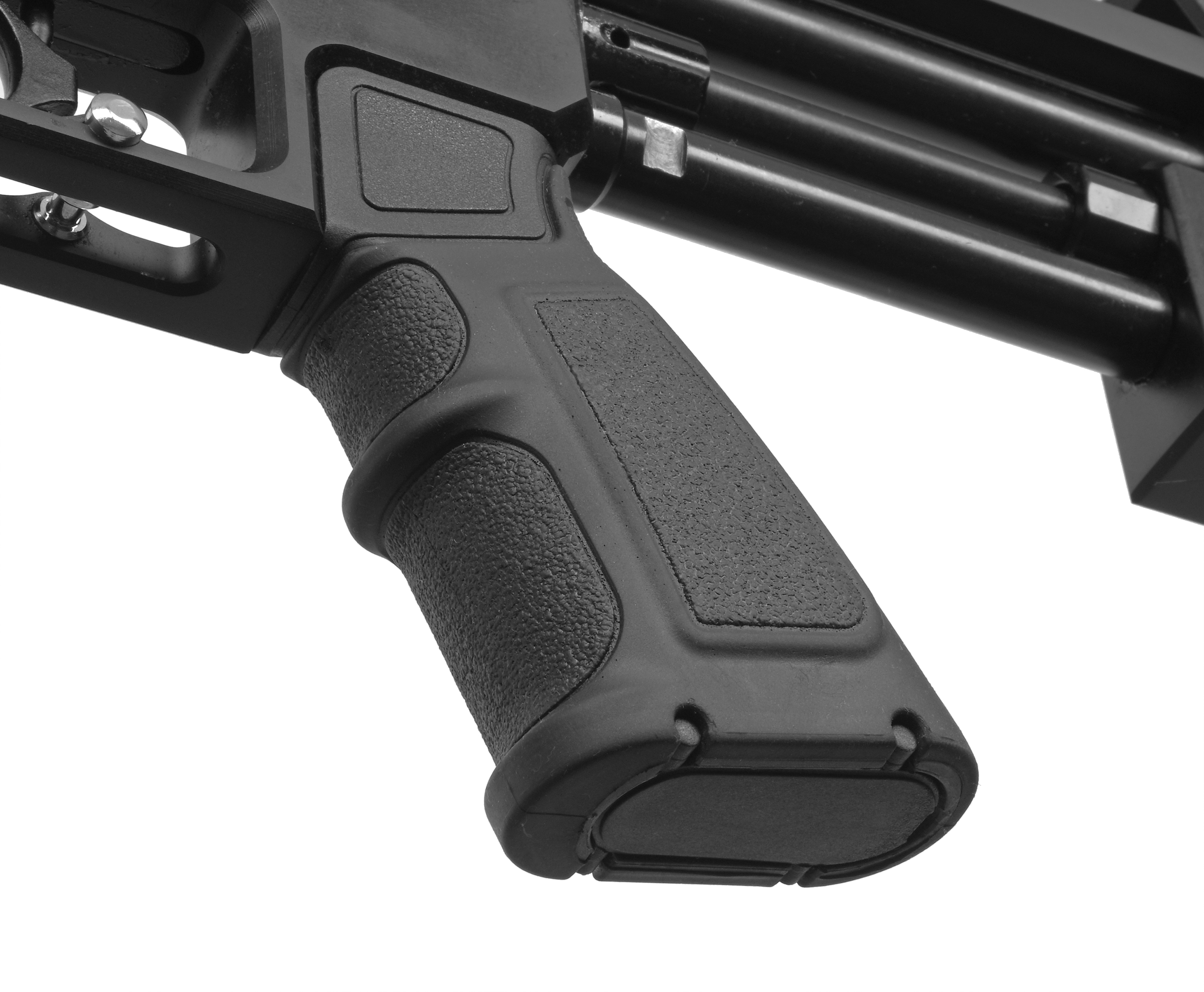 Так как образец относится к категории пневматики с предварительной накачкой ресивера, для совершения выстрела нужно заправить встроенный баллон воздухом. Конструкция включает колбу на 425 куб. см, что повышает автономность. Заполнение происходит при помощи ручных или электрических насосов ВД, подключаемых к разъему на корпусе посредством штуцера из набора.