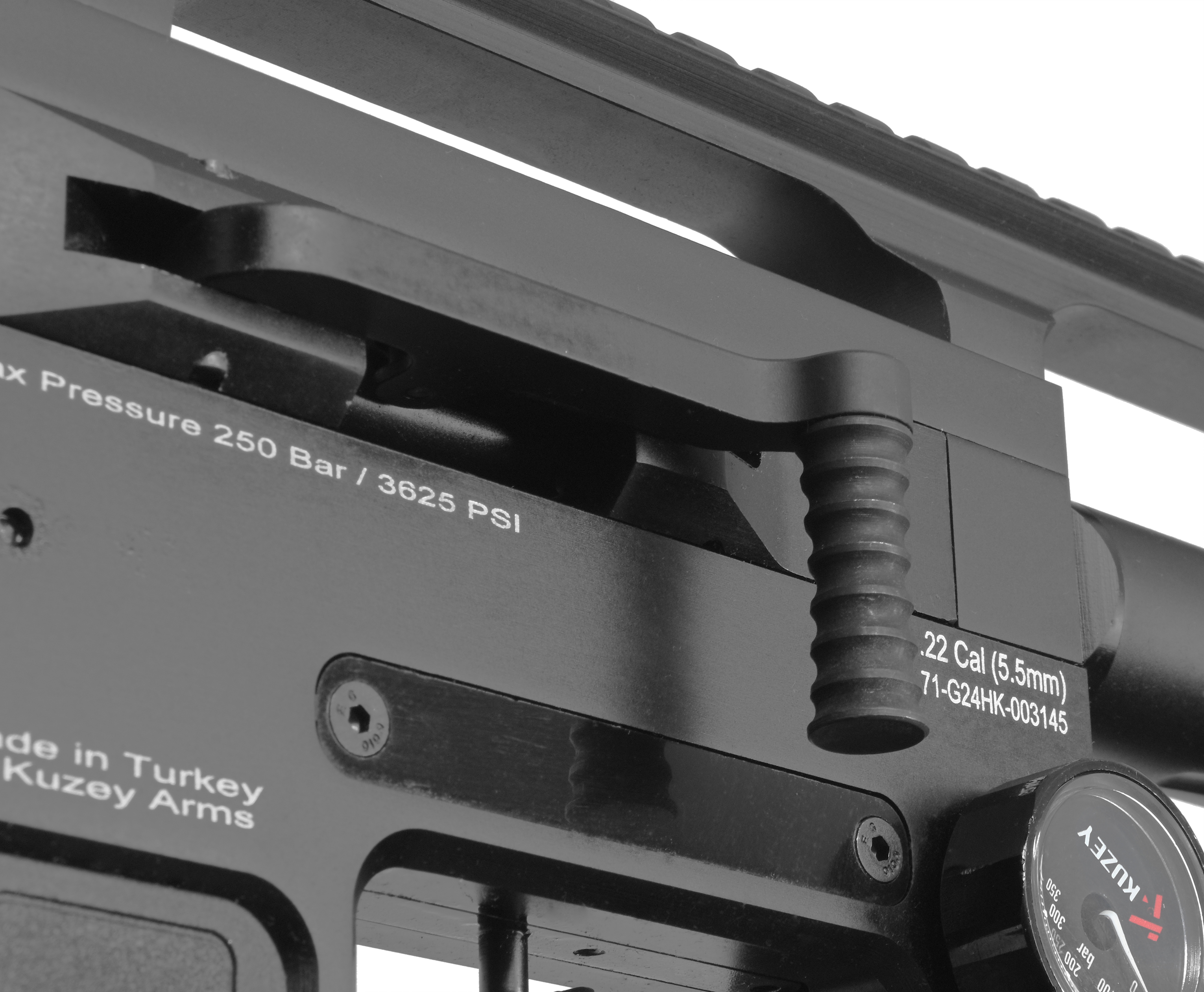 Максимальное разрешенное давление для корректной работы составляет 250 Бар. Важно отметить, что пневматическая винтовка Kuzey K90 оснащается редуктором для точной настройки параметров, что делает эксплуатацию максимально контролируемой. Для наблюдения за текущей степенью заполнения присутствуют два манометра.