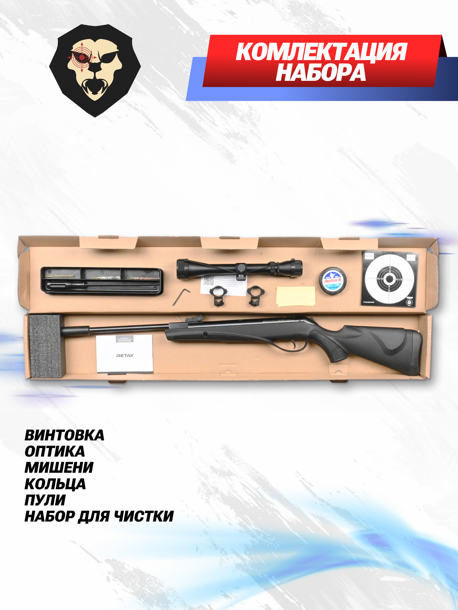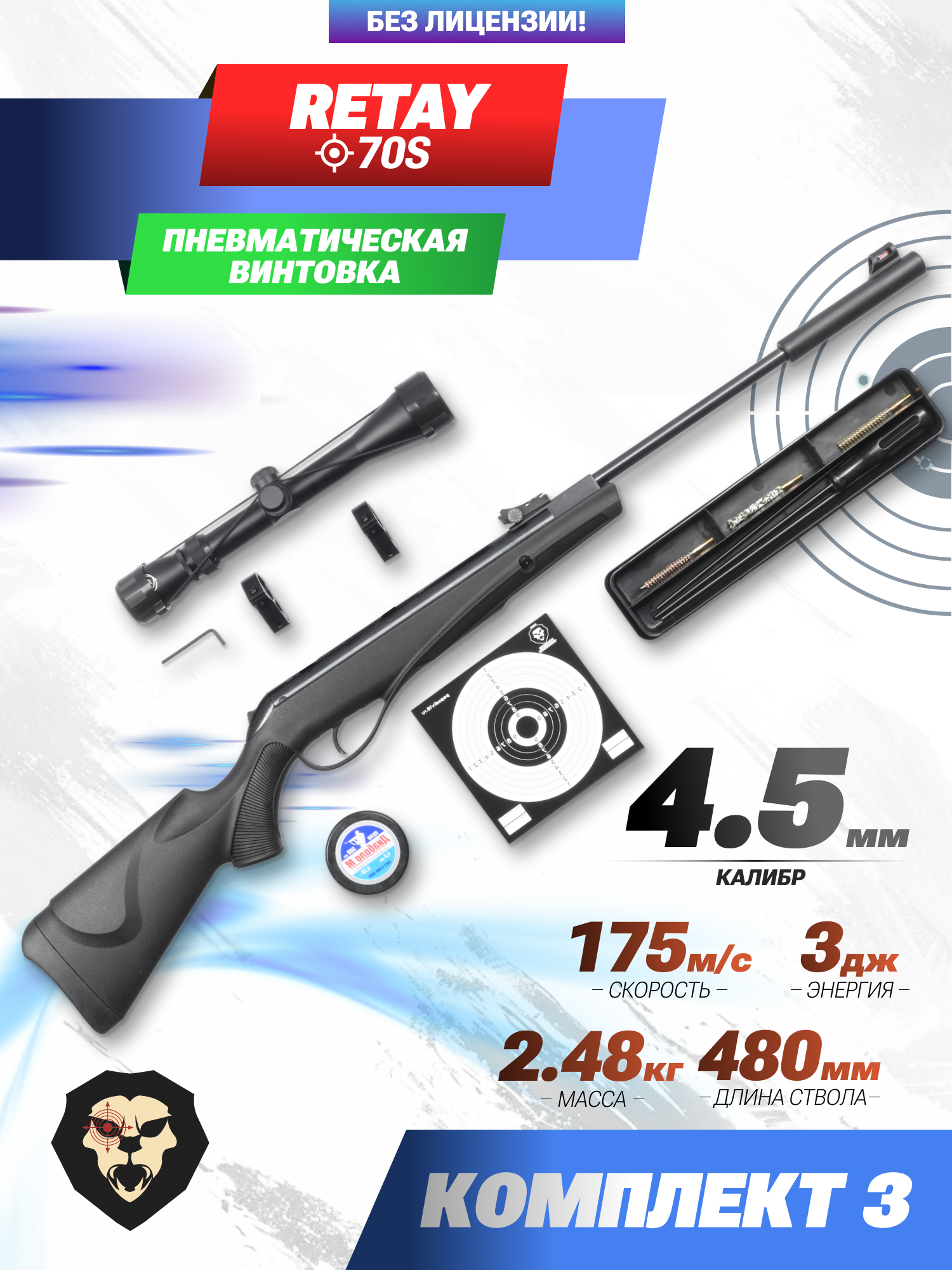 Пневматическая винтовка Retay 70S 4.5 мм комплект Hunter №3 подарочный (прицел, кольца, набор для чистки, мишени, пули) купить в интернет-магазине Popadiv10.