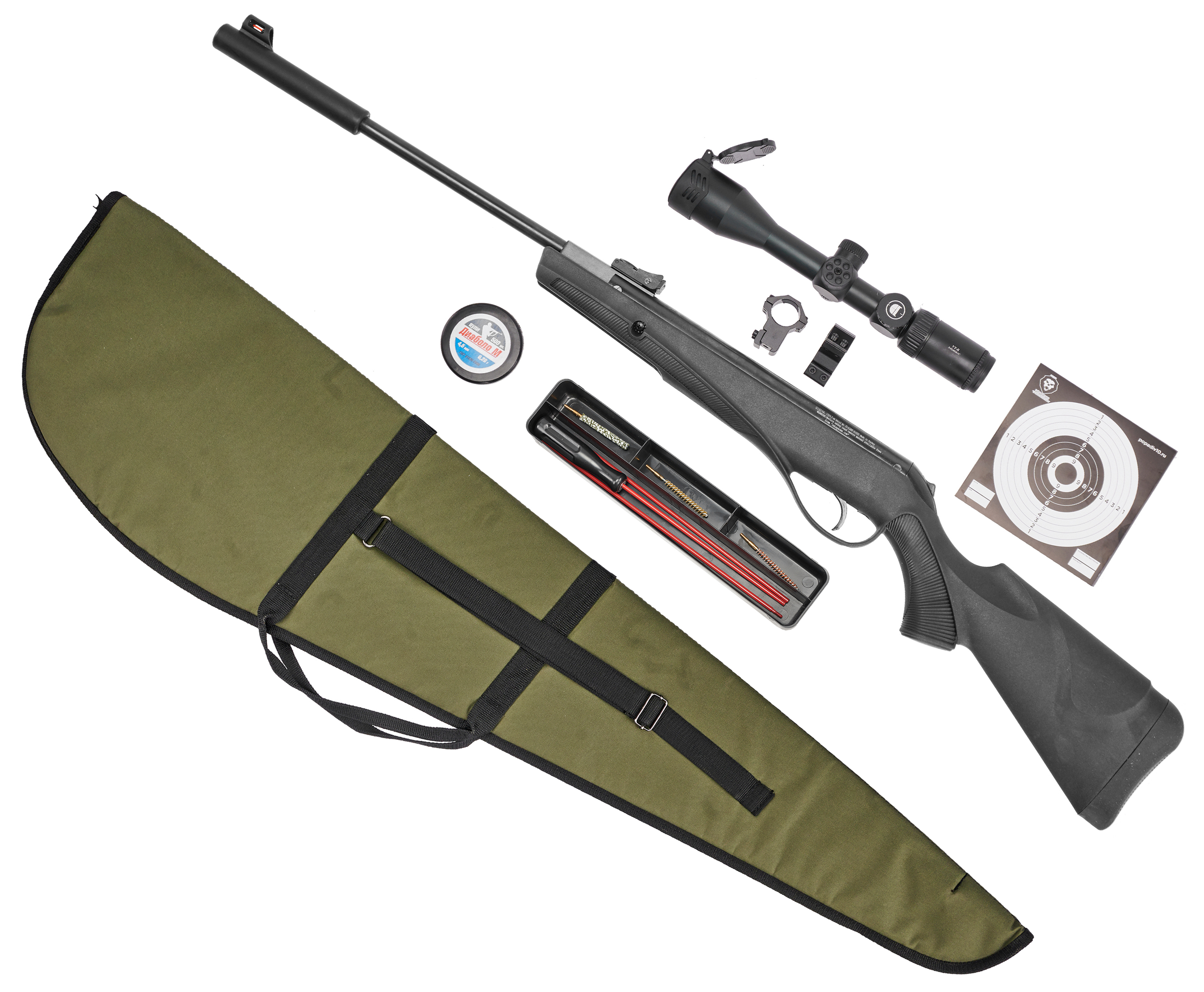 После покупки пневматического оружия новые владельцы часто приобретают различные дополнительные аксессуары и расходники, необходимые для полноценного использования продукции. Подарочные комплекты серии Хантер изначально включают требуемые компоненты для тренировок по стрельбе, что позволяет избежать дополнительных временных затрат на походы в магазины и ожидания доставки отдельных приспособлений. Рассматриваемый набор создан на базе популярной и надежной пружинно-поршневой винтовки турецкого производителя Retay.