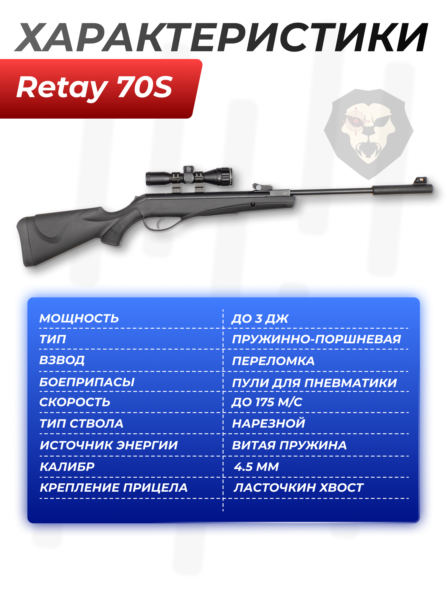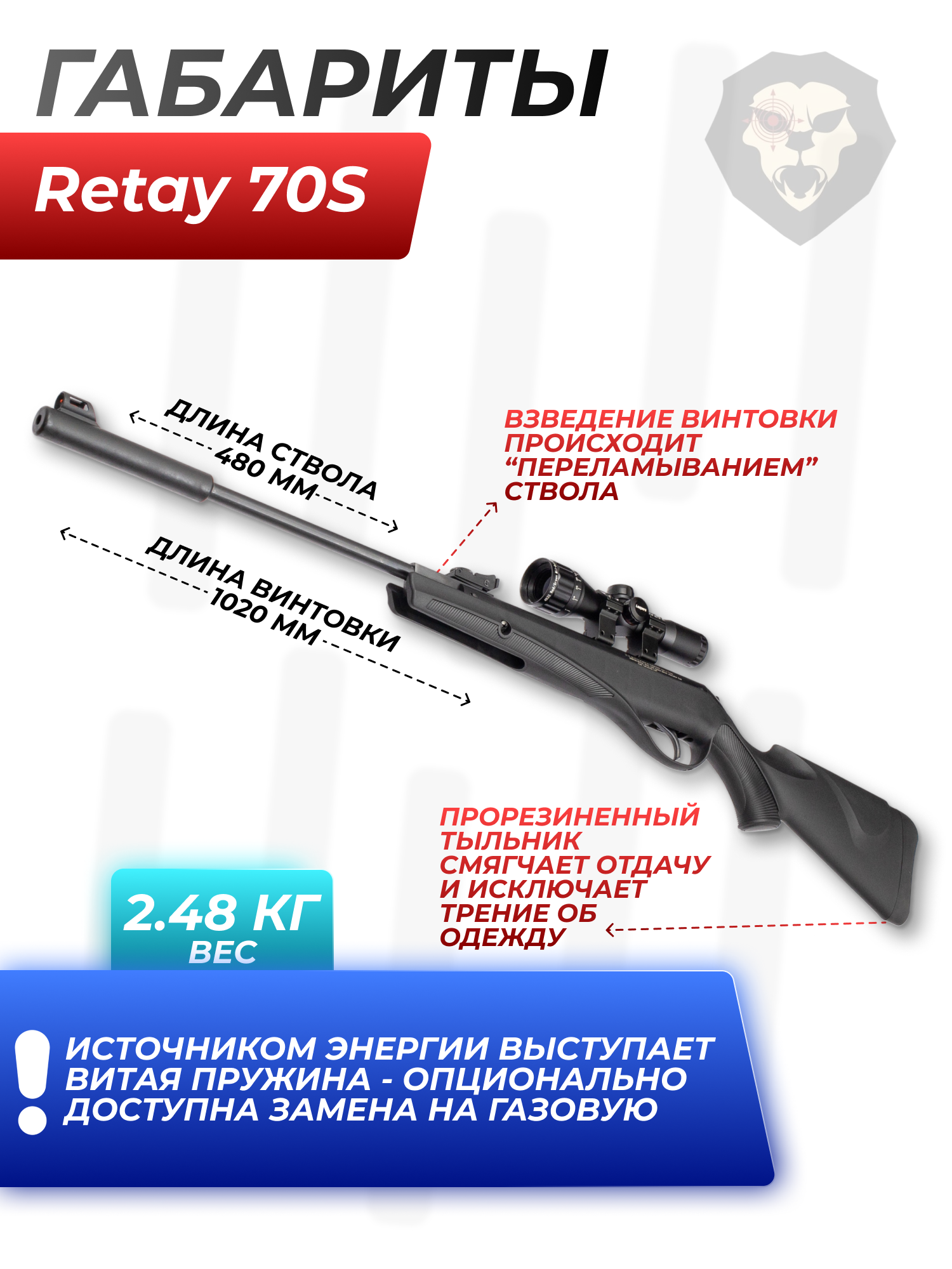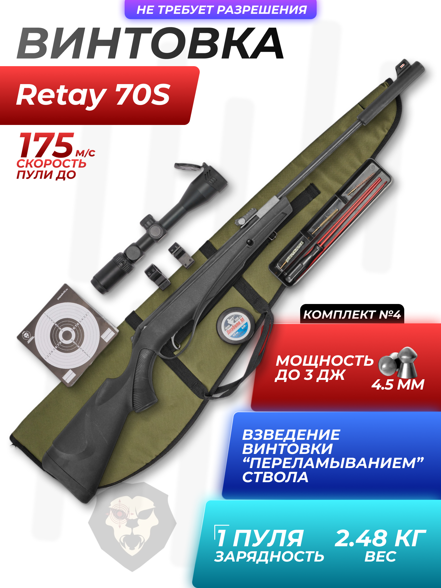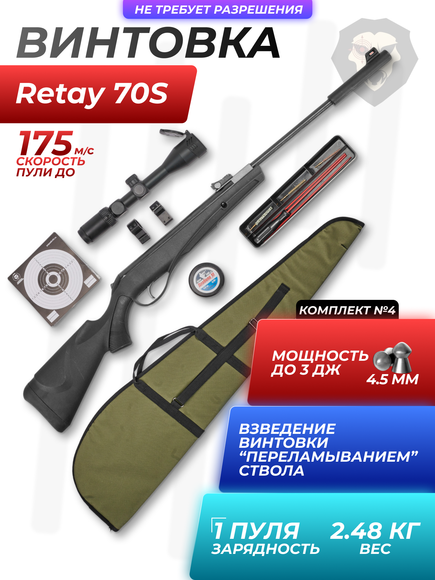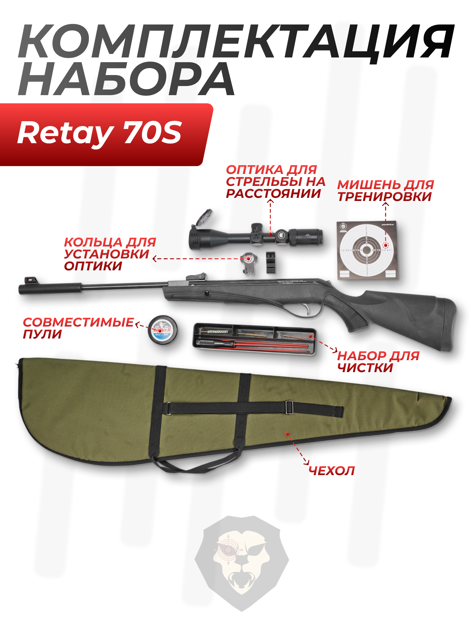 Пневматическая винтовка Retay 70S 4.5 мм подарочный набор Hunter №4 (прицел, кольца, чехол, набор для чистки, мишени, пули) купить в интернет-магазине Popadiv10.