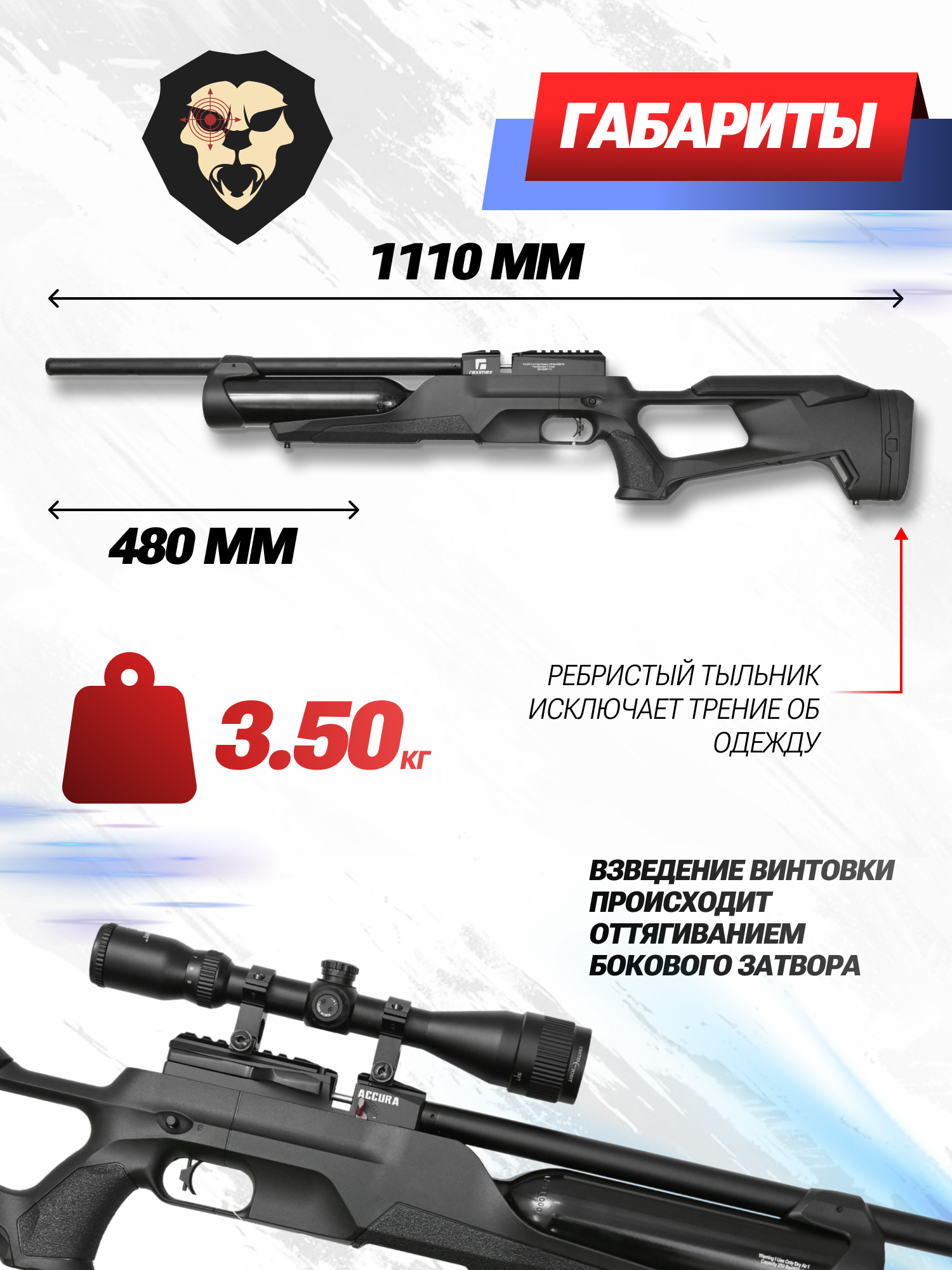 Информация о товаре "Пневматическая винтовка Reximex Accura 5.5 мм (PCP, 3 Дж, пластик)" носит ознакомительный характер, и не является публичной офертой, определяемой положениями Статьи 437 Гражданского кодекса Российской Федерации, характеристики, внешний вид, цвет и комплектация могут быть изменены производителем без уведомления.