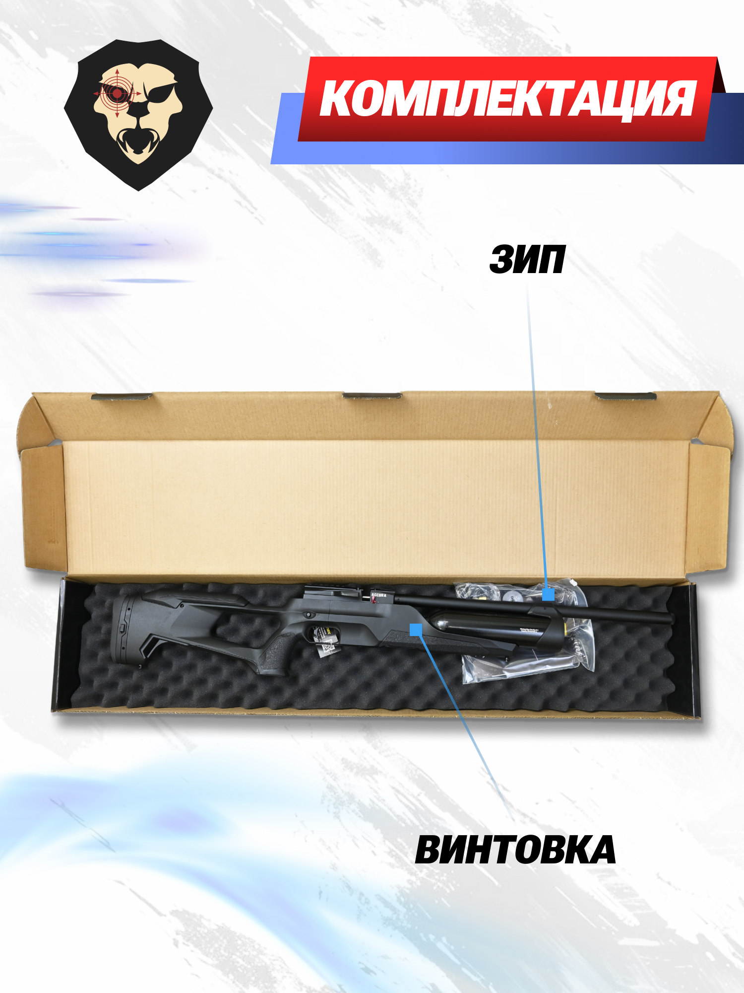 | Комплектация | Винтовка, упаковка, заправочный штуцер, магазин - 2 шт, ключи, лоток, РТИ, краткая документация, копия сертификата (по запросу покупателя) |