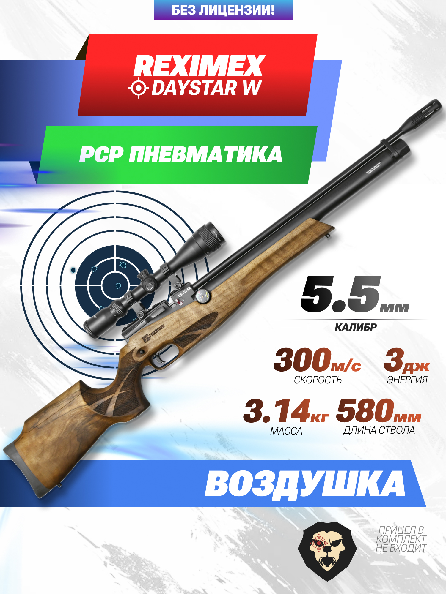 Пневматическая винтовка Reximex Daystar W 5.5 мм (PCP, 3 Дж, дерево) купить в интернет-магазине Popadiv10.