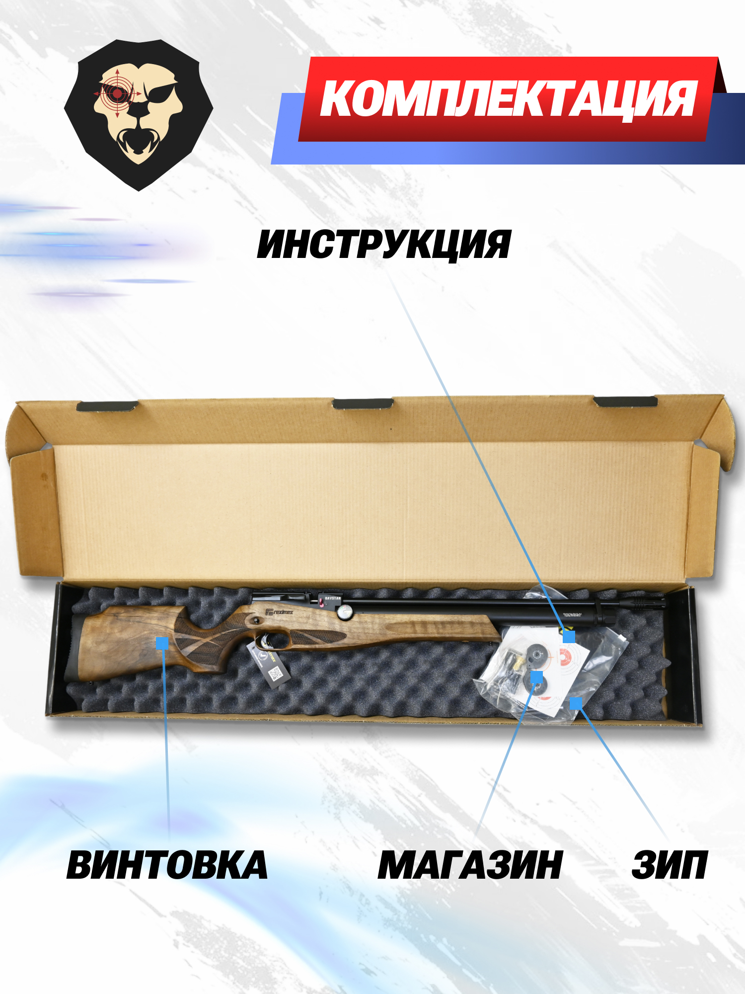 | Комплектация | Винтовка, упаковка, заправочный штуцер, набор уплотнителей, магазины - 2 шт, краткая документация, копия сертификата (по запросу покупателя) |