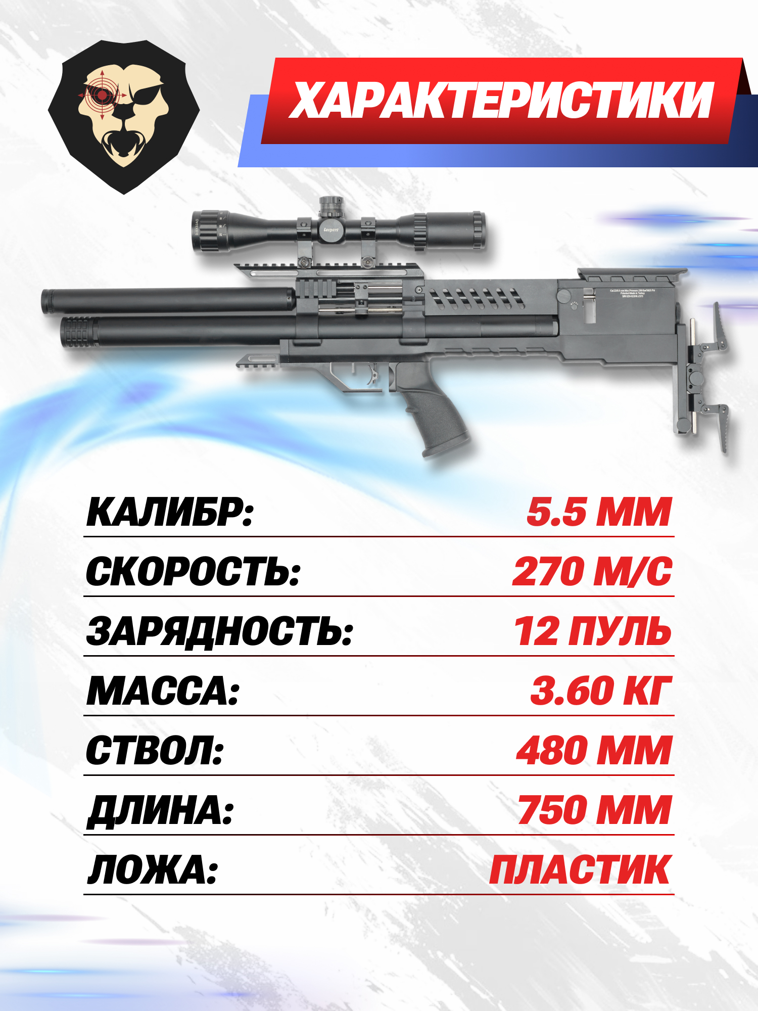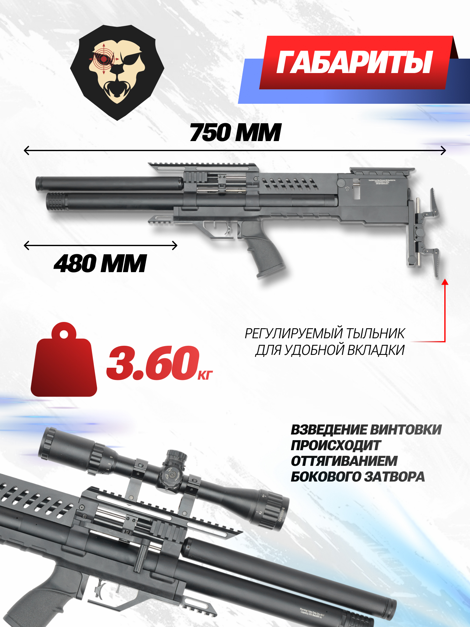 | Комплектация | Винтовка, упаковка, заправочный штуцер, краткая документация, копия сертификата (по запросу покупателя) |