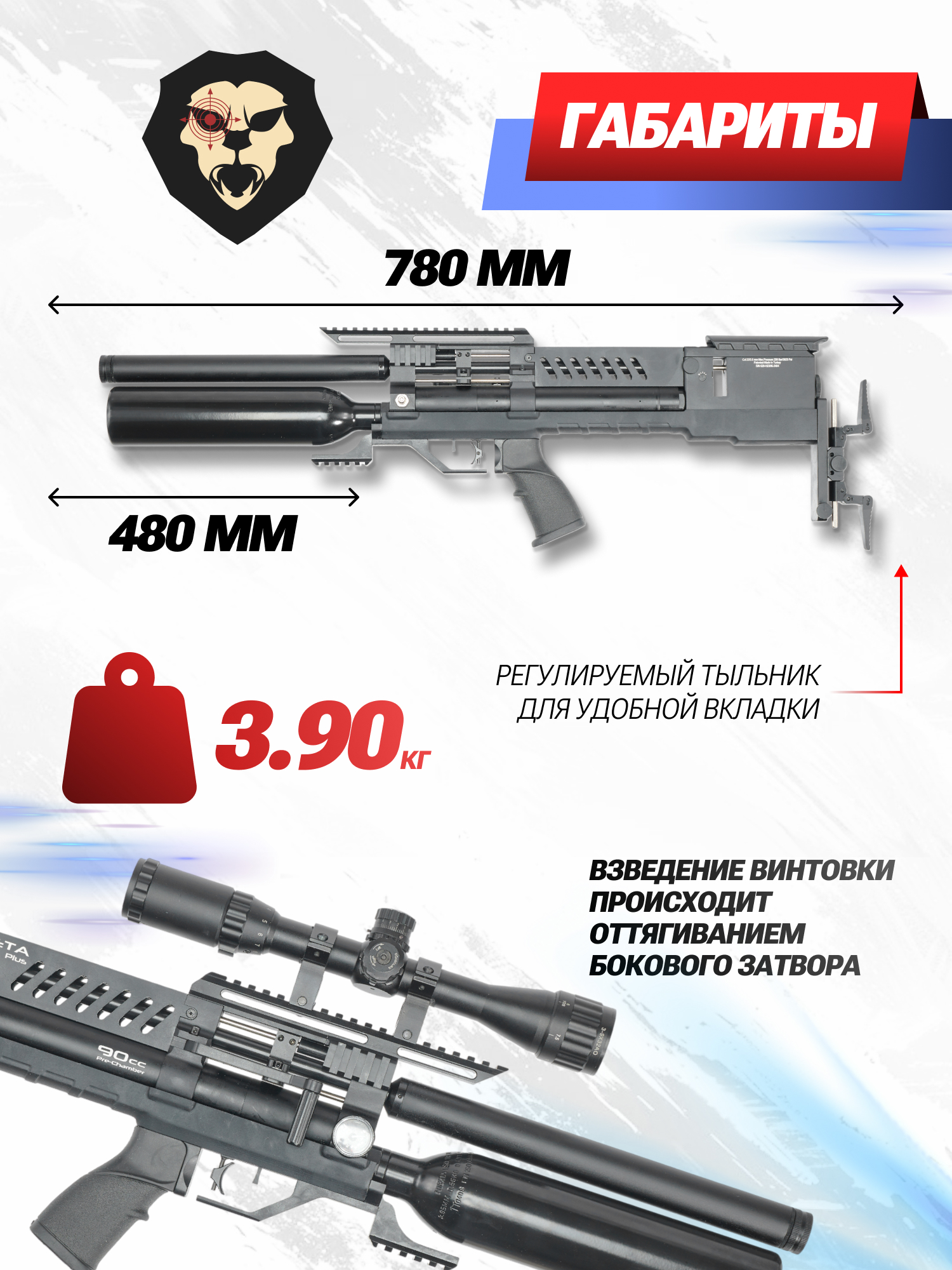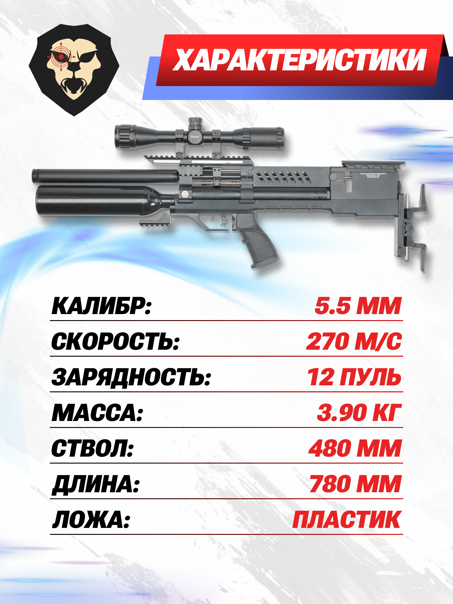 | Комплектация | Винтовка, магазин, заправочный штуцер, упаковка, краткая документация, копия сертификата (по запросу покупателя) |