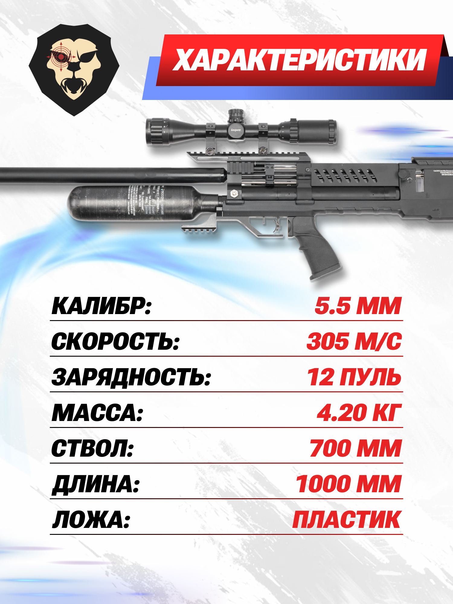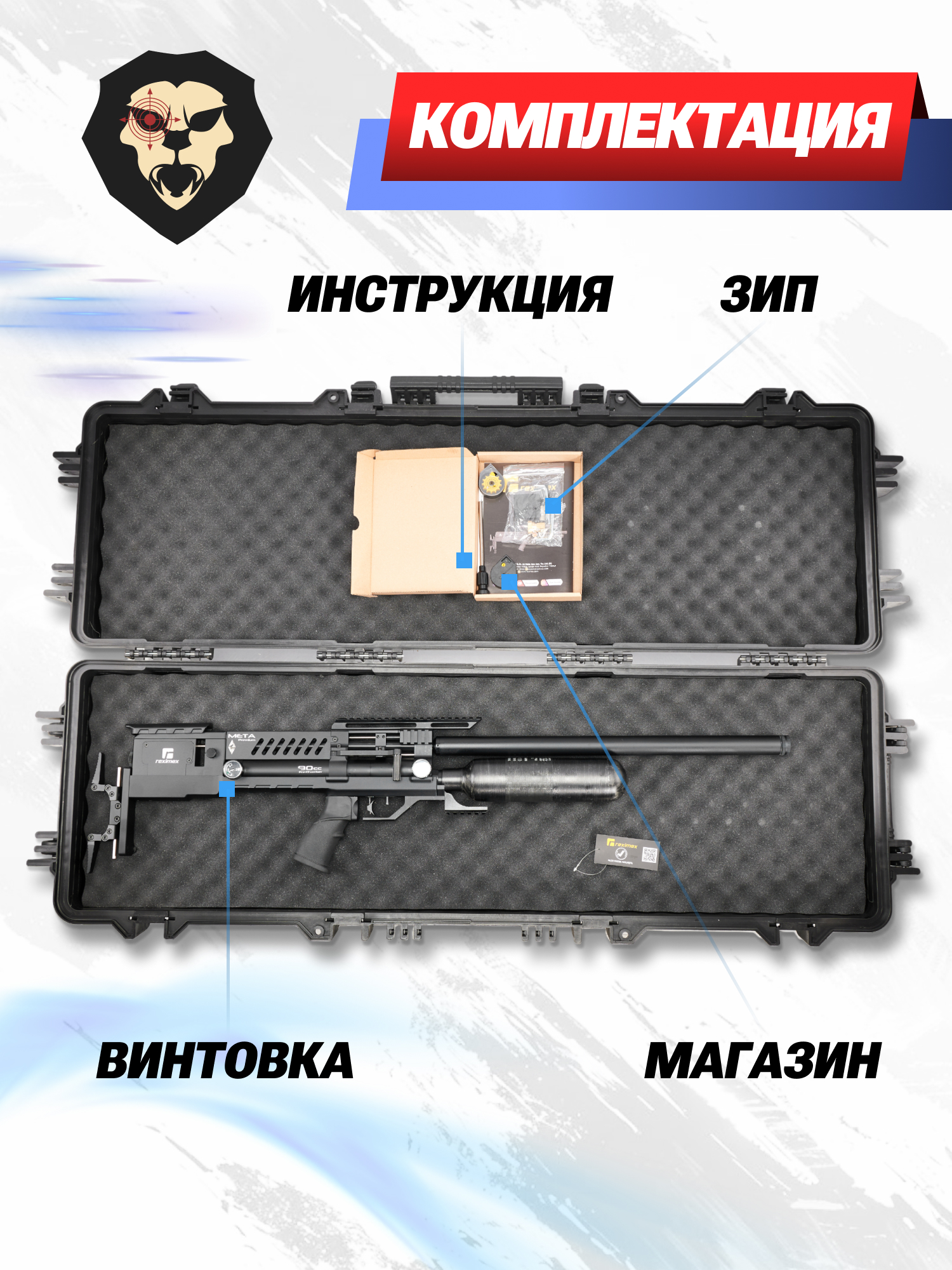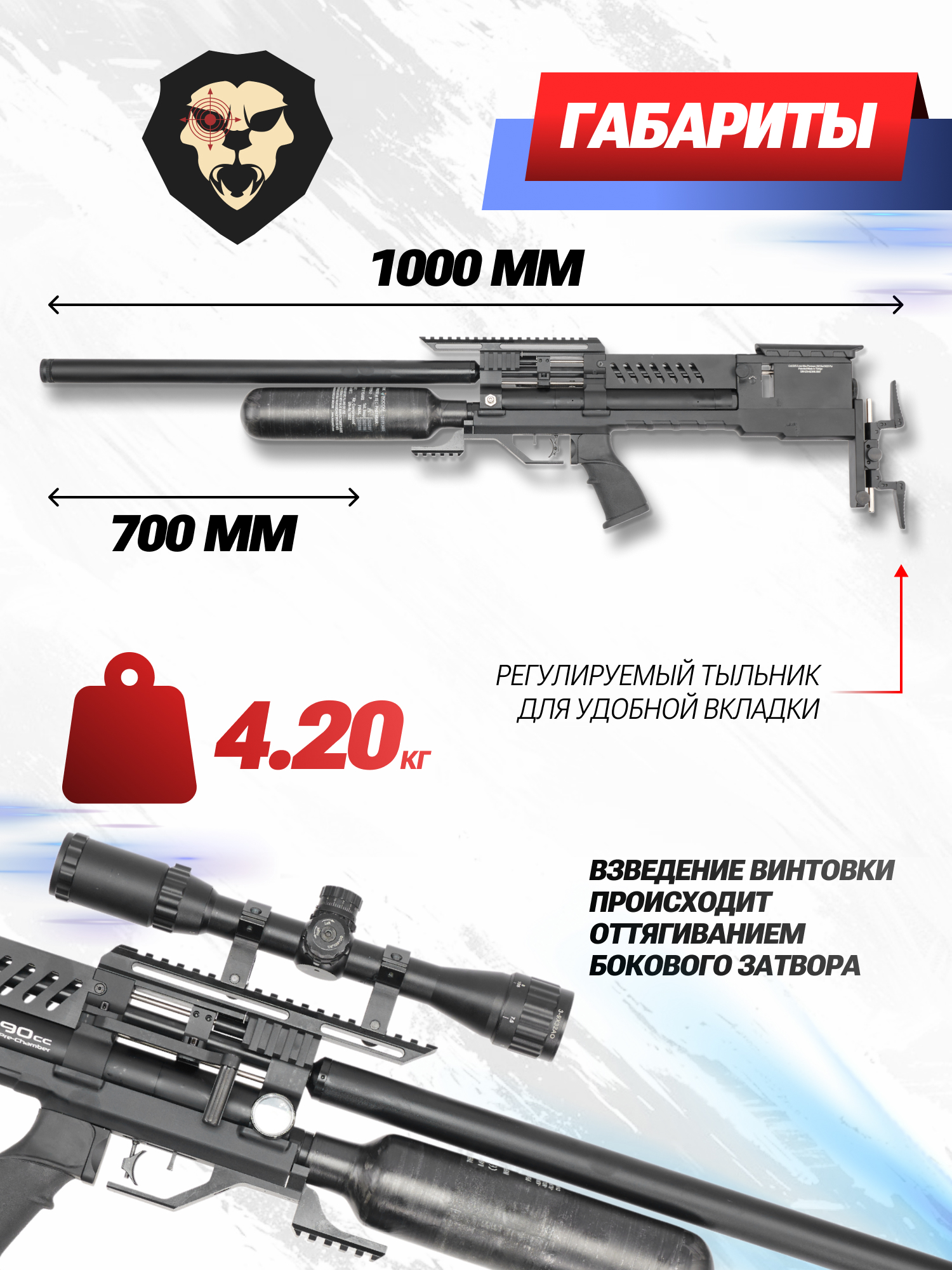 | Комплектация | Винтовка, упаковка, заправочный штуцер, краткая документация, копия сертификата (по запросу покупателя) |