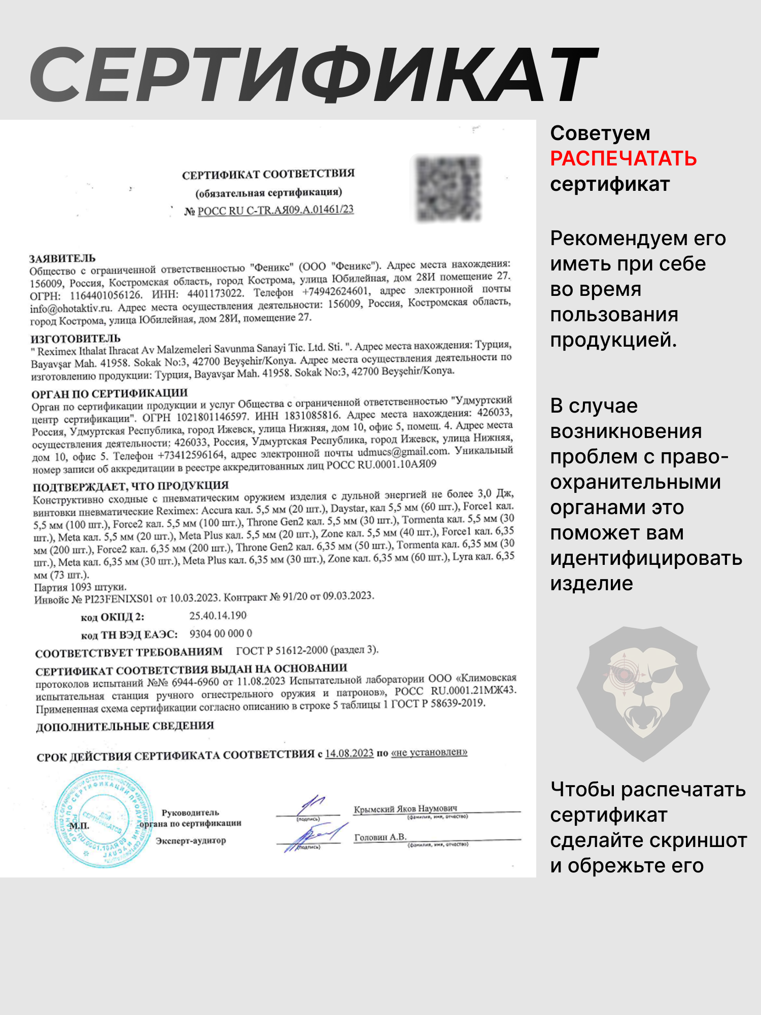 Информация о товаре "Пневматическая винтовка Reximex Tormenta W 6.35 мм (дерево)" носит ознакомительный характер, и не является публичной офертой, определяемой положениями Статьи 437 Гражданского кодекса Российской Федерации, характеристики, внешний вид, цвет и комплектация могут быть изменены производителем без уведомления.