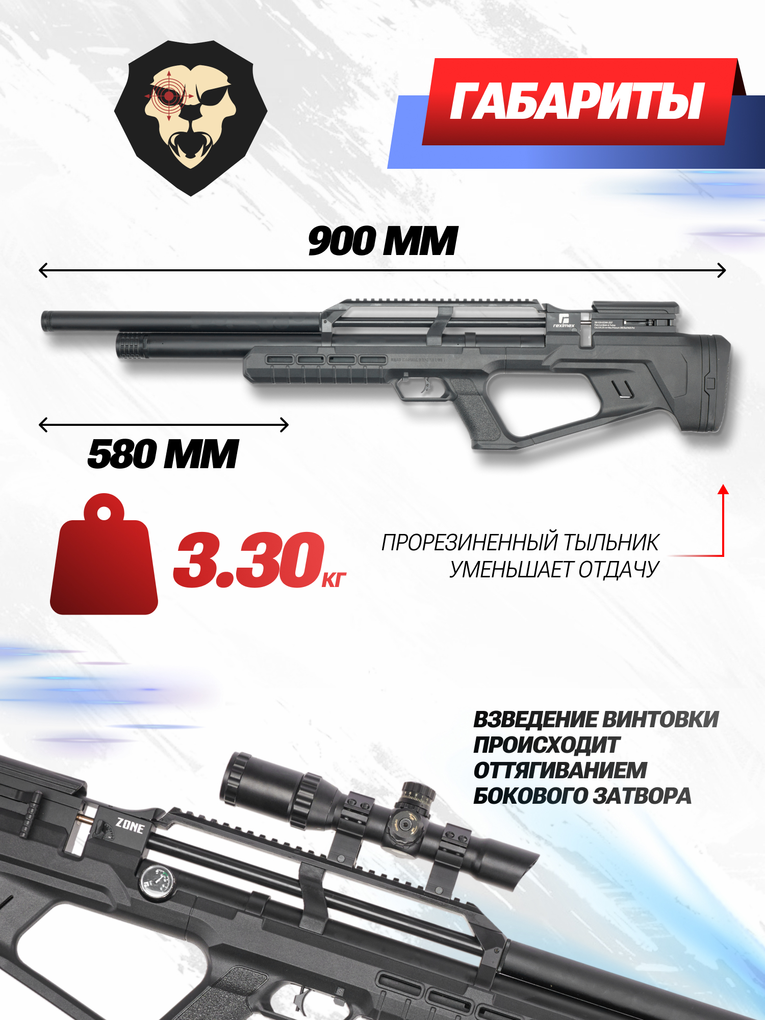 Благодаря стремительному развитию сегмента пневматического гражданского оружия на отечественном рынке ежегодно появляются современные многофункциональные образцы винтовок и пистолетов. В кругу спортсменов, охотников и любителей развлекательной стрельбы большим спросом пользуются PCP устройства турецкой компании Reximex за счет своих характеристик и надежности. Расширяя товарный ассортимент, фирма пополнила эту линейку новейшими образцами в компактной компоновке Bull-Pup.