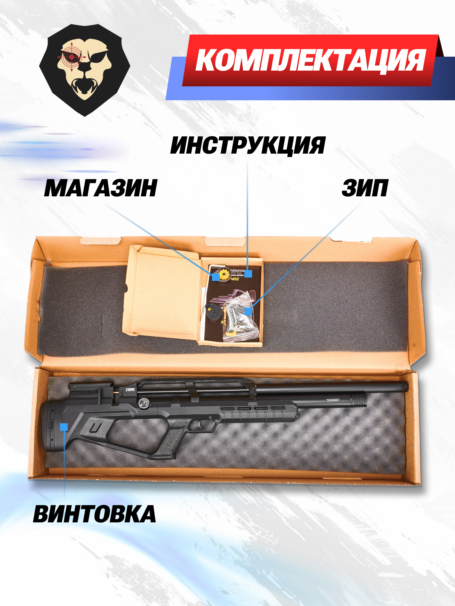 | Комплектация | Винтовка, магазин, заправочный штуцер, упаковка, краткая документация, копия сертификата (по запросу покупателя) |