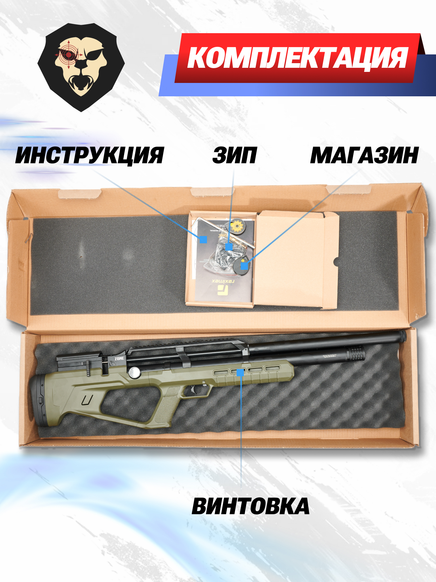 | Комплектация | Винтовка, магазин, заправочный штуцер, упаковка, краткая документация, копия сертификата (по запросу покупателя) |