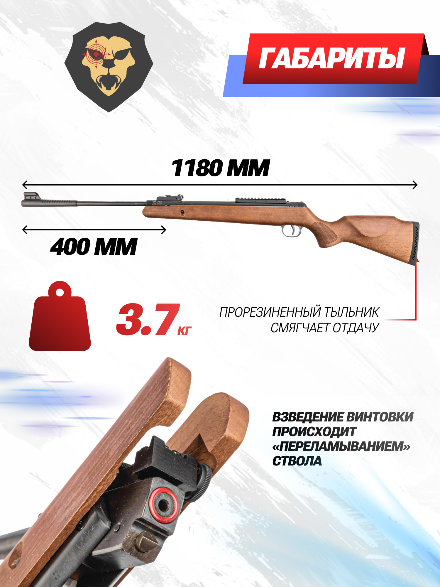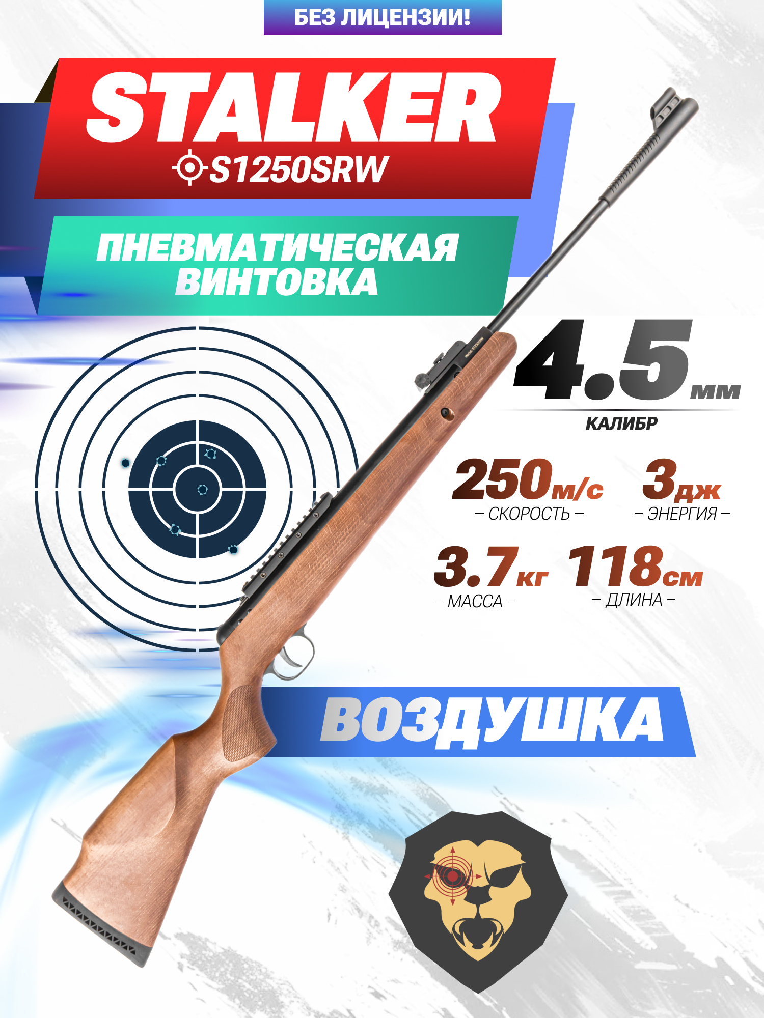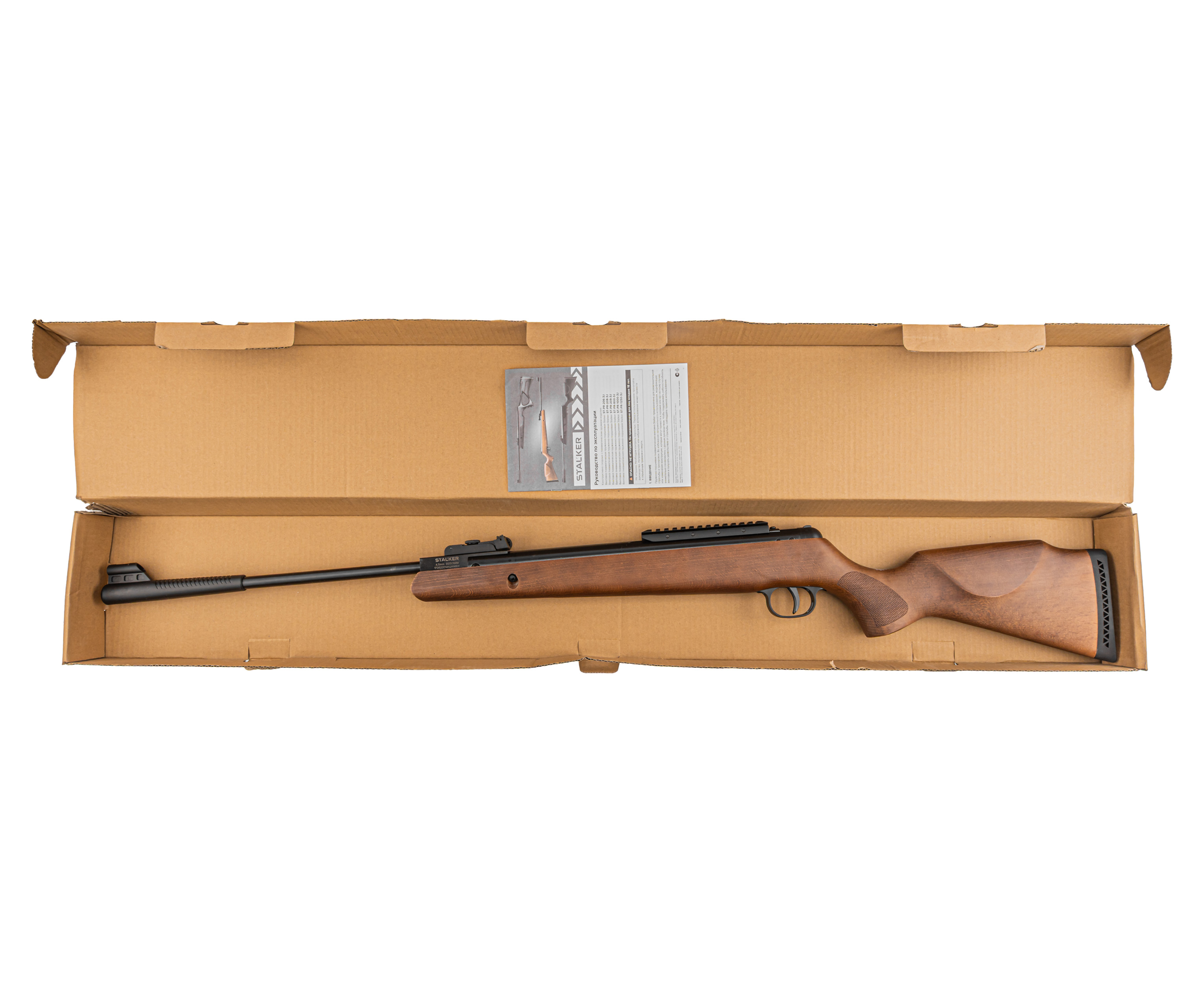 Интересные и сравнительно доступные исполнения «воздушек» данного сегмента представила фирма Stalker. Обозреваемый экземпляр S1250SRW отличается от альтернативных моделей в линейке материалом ложи. Она вырезается из натурального дерева, что дает приятный тактильный отклик и положительно отражается на эстетических качествах оружия.
