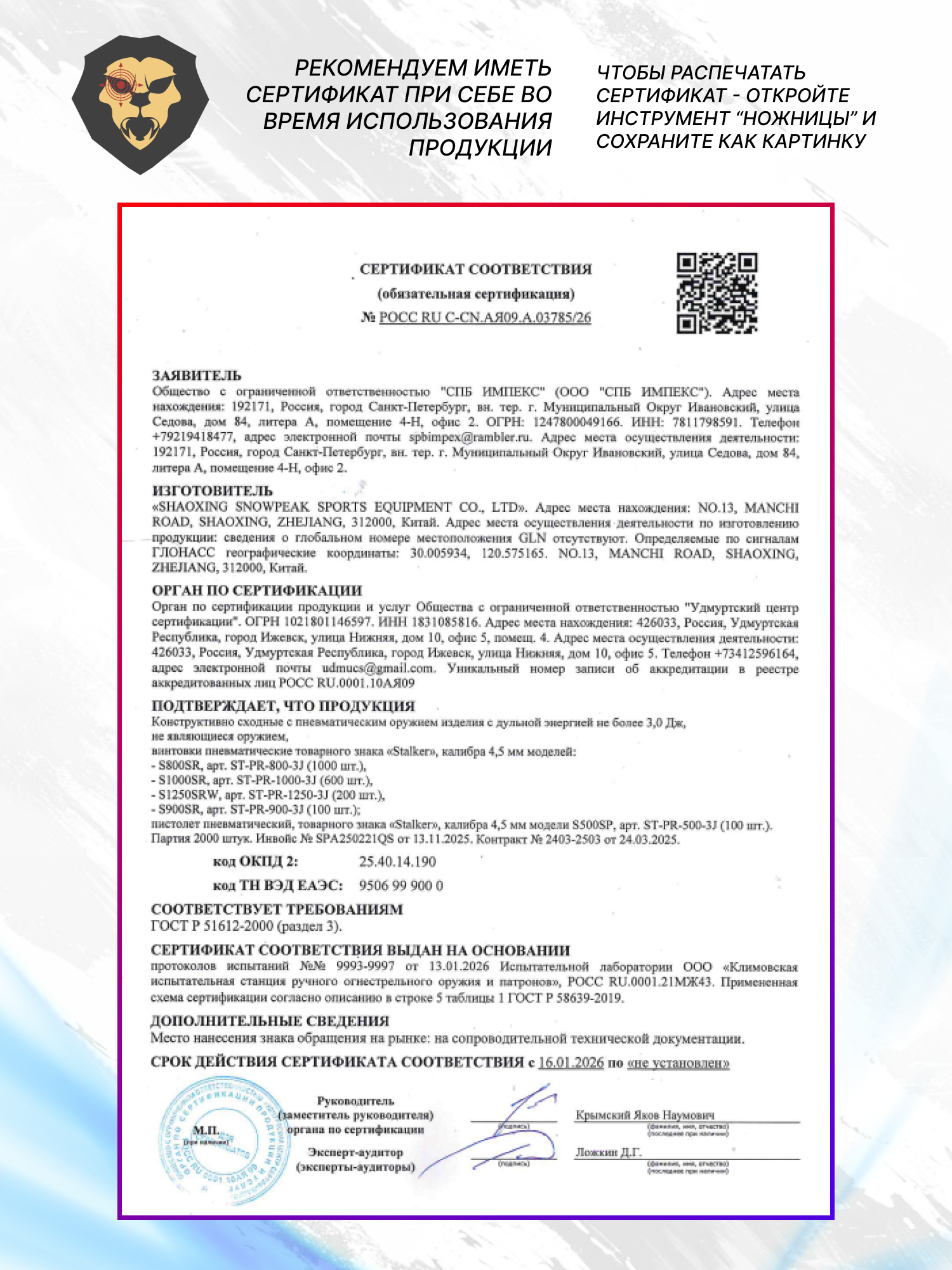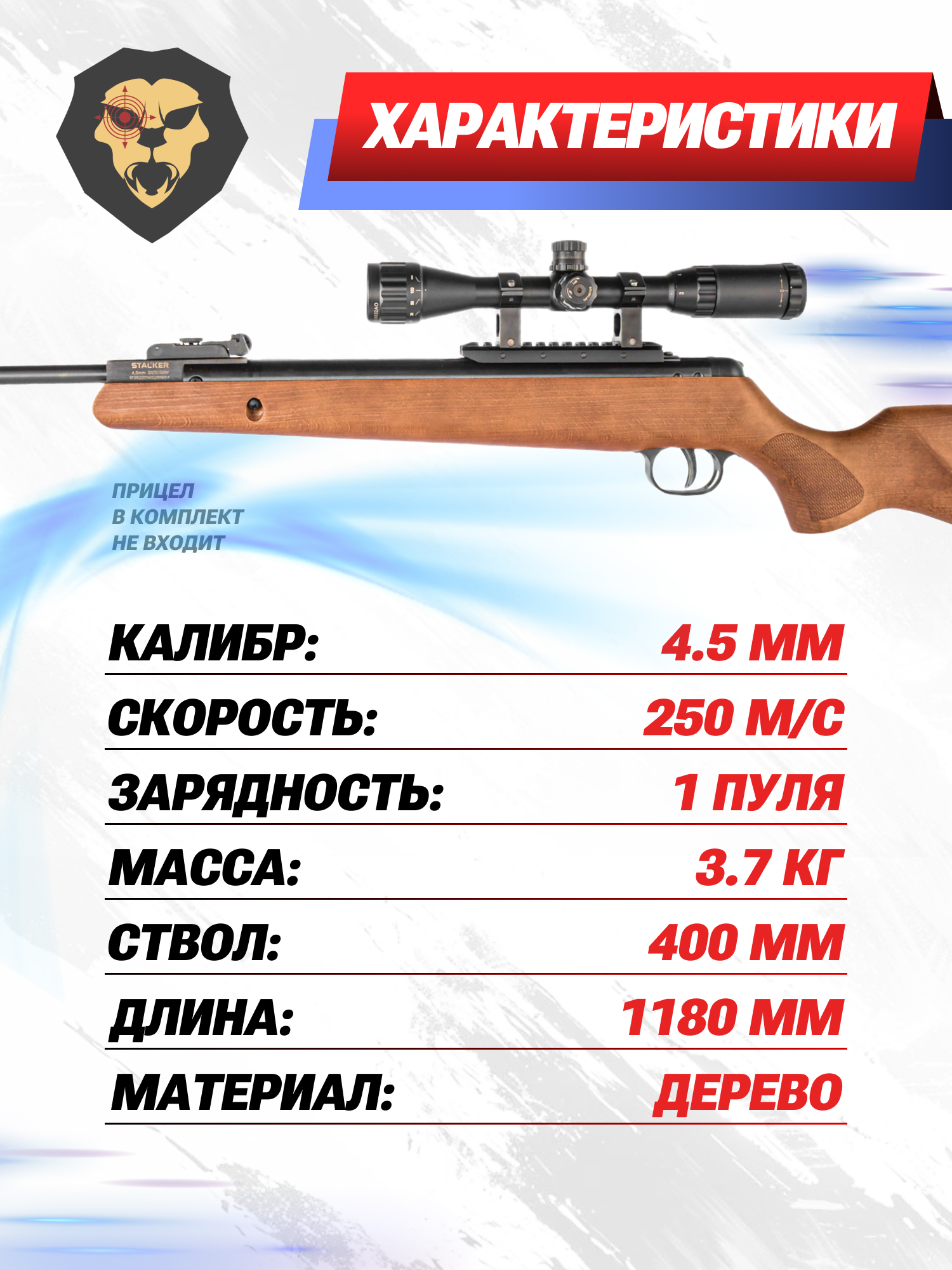 Информация о товаре "Пневматическая винтовка Stalker S1250SRW 4.5 мм (3 Дж, дерево)" носит ознакомительный характер, и не является публичной офертой, определяемой положениями Статьи 437 Гражданского кодекса Российской Федерации, характеристики, внешний вид, цвет и комплектация могут быть изменены производителем без уведомления.