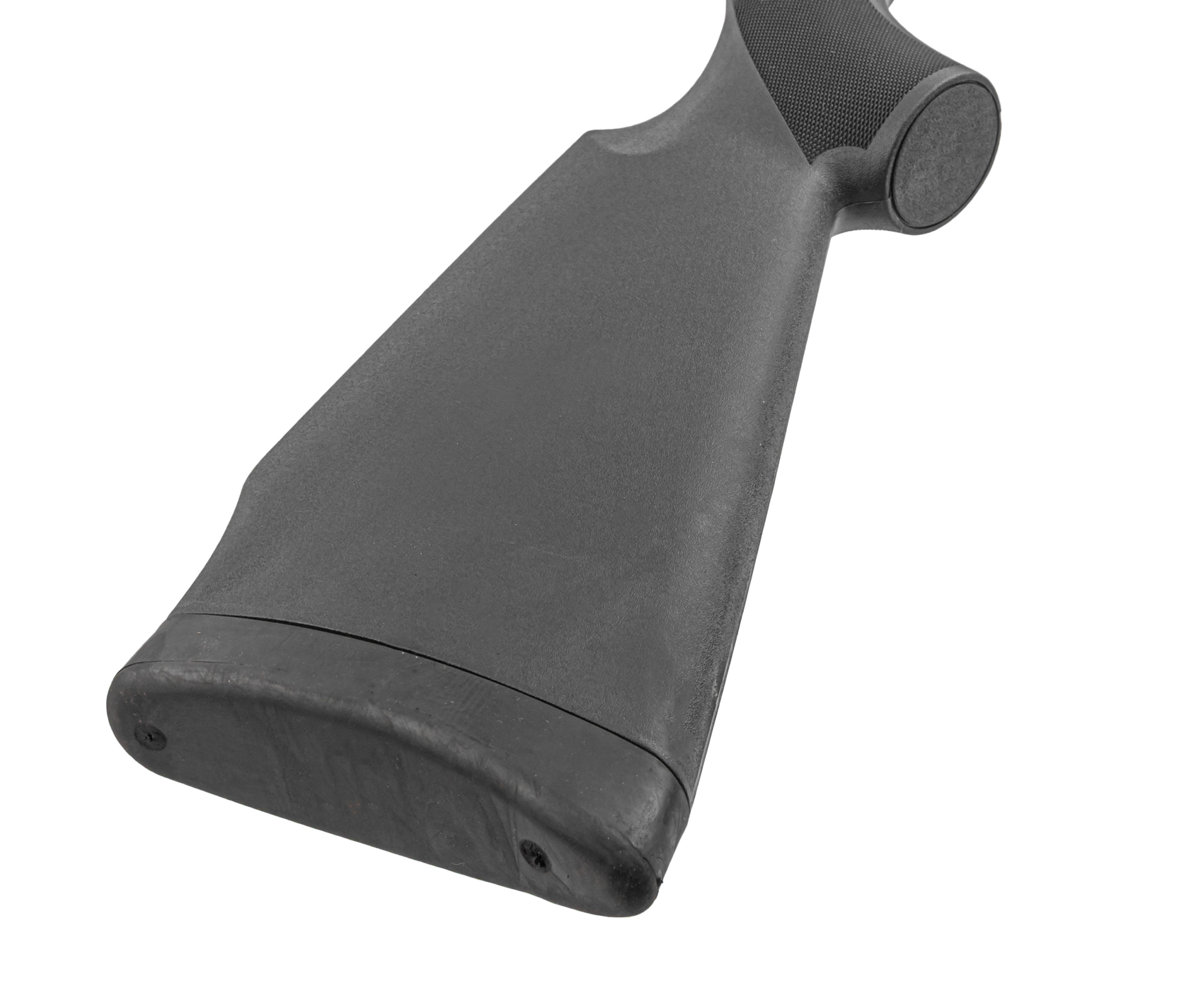 Винтовка фирмы Сталкер обладает современным дизайном и оснащается практичной и неприхотливой ложей из полимера. Пластиковая фурнитура уверенно сопротивляется механическому воздействию и дополнительно способствует облегчению конструкции - при длине 1220 мм общий вес изделия не превышает 3.8 кг. Для удобства обращения на рукояти и цевье присутствуют насечки, что совместно с резиновым тыльником препятствует скольжению.