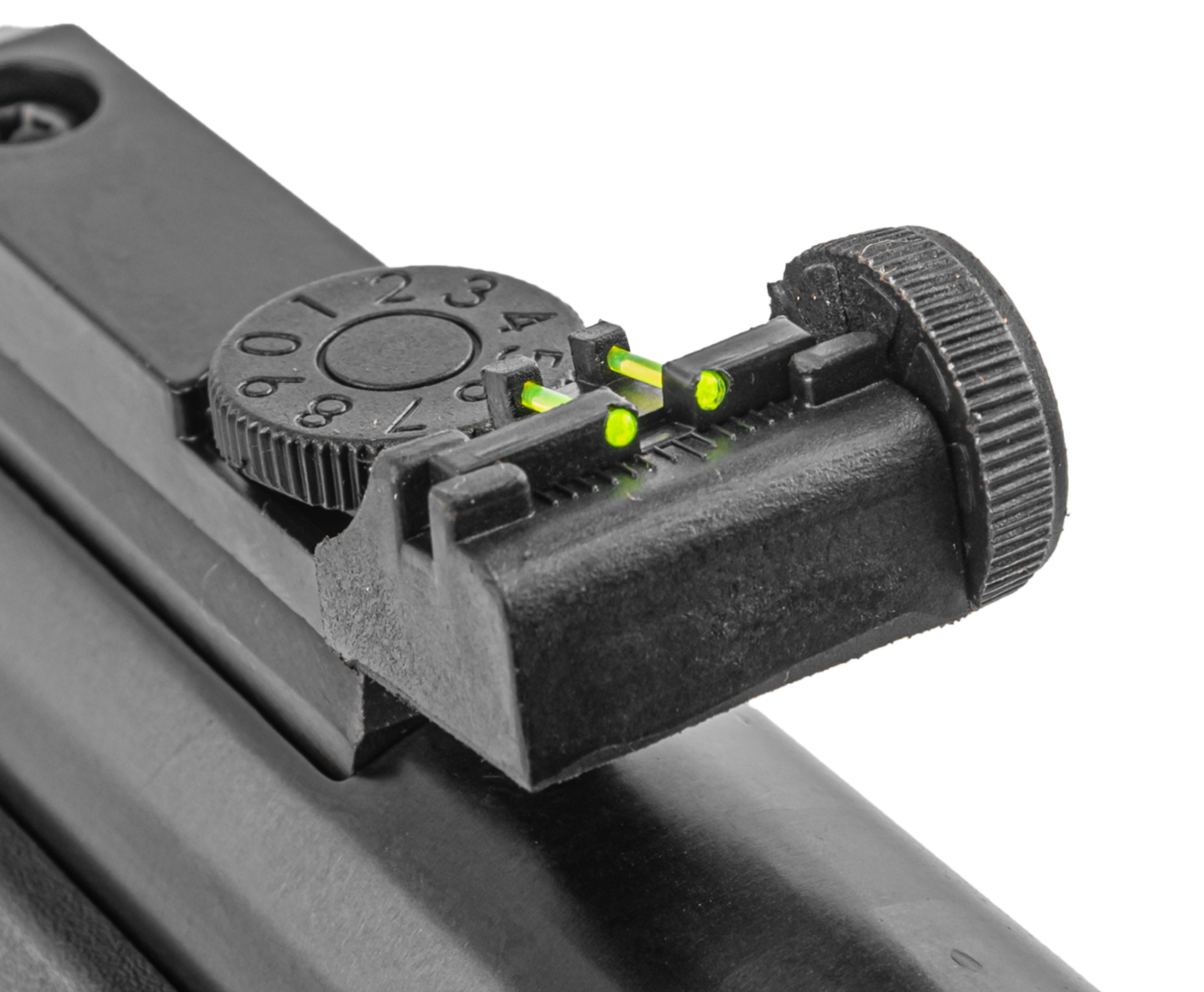 При этом пневматическая винтовка ППП может эксплуатироваться в состоянии «из коробки» без дополнительных вложений. Для наведения в таком случае задействуются стандартные приспособления механического типа. Мушка вкупе с регулируемым целиком оформлена фиберглассовыми вставками, что повышает заметность элементов при недостаточном освещении.