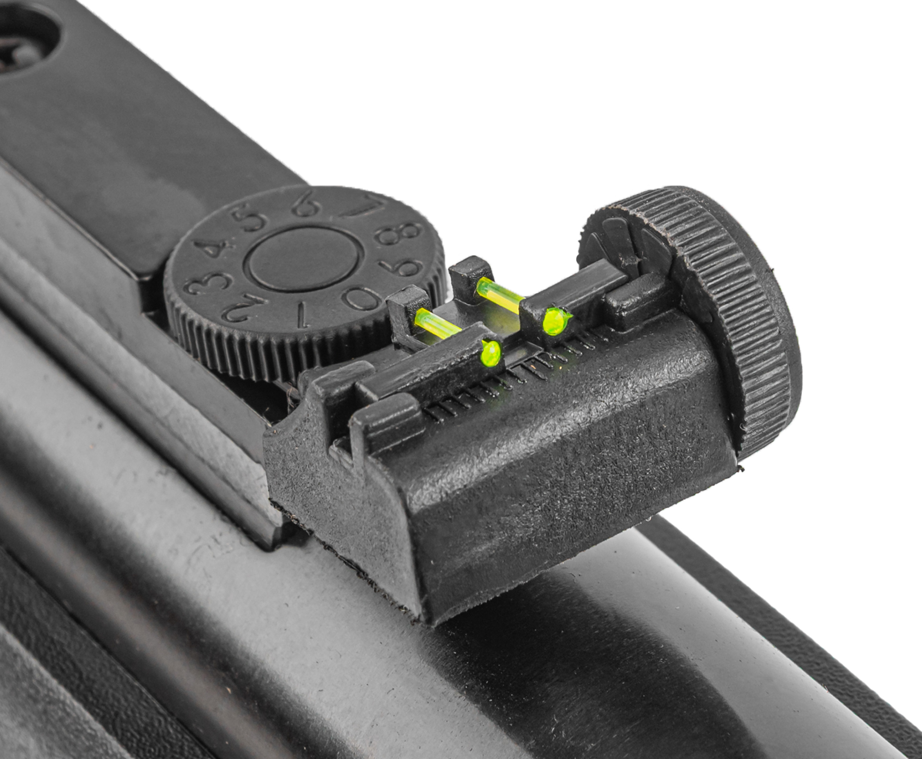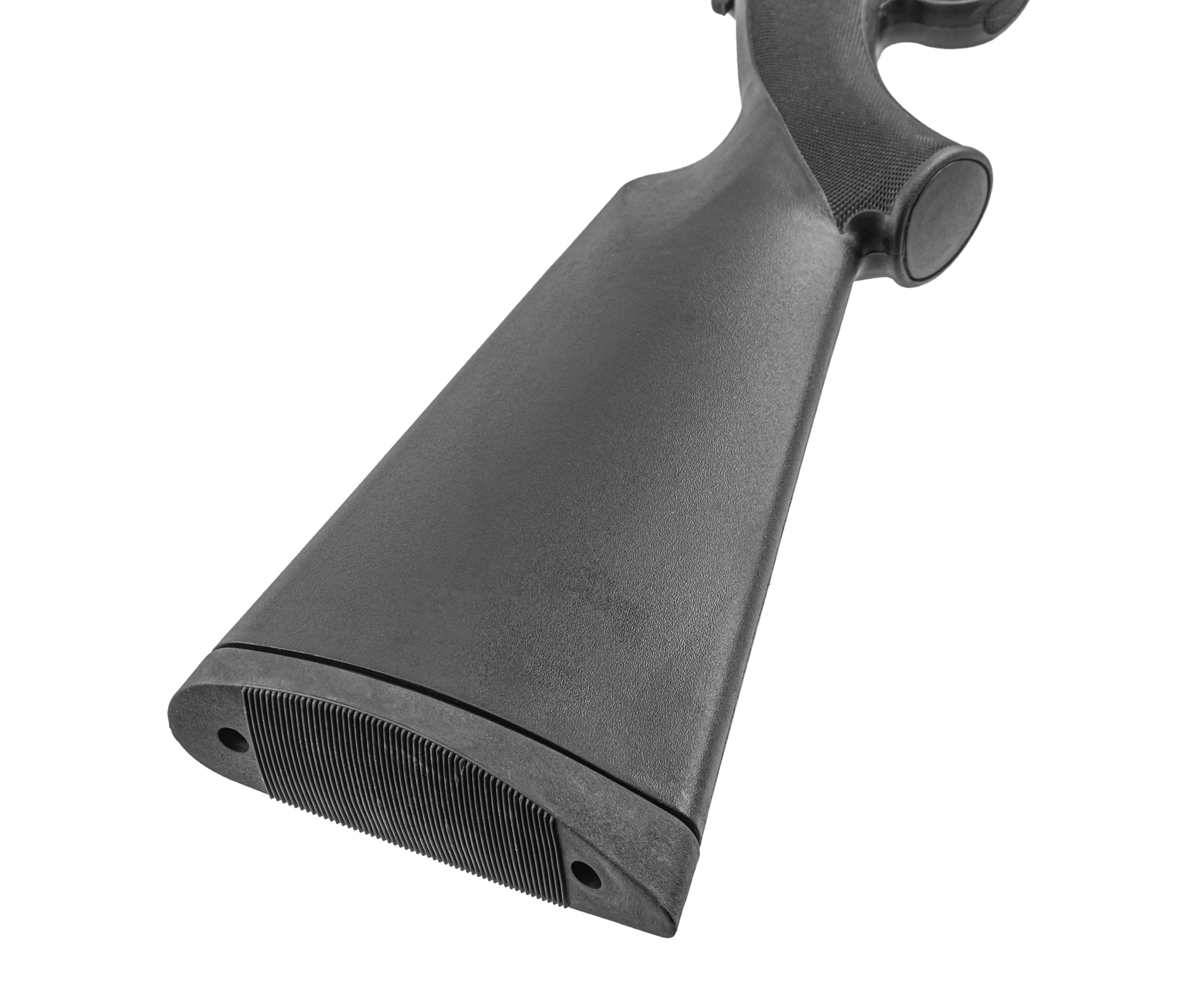 Вкладка будет комфортна как правше, так и левше из-за амбидекстральной фурнитуры. Приклад дополнен ребристым резиновым затыльником, который с одной стороны амортизирует отдачу, а с другой - предотвращает скольжение по плечу. По умолчанию для наведения предусмотрены механические приспособления в виде мушки и регулируемого целика.