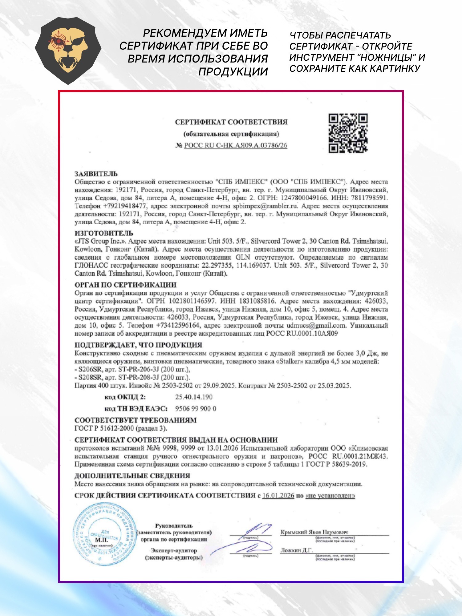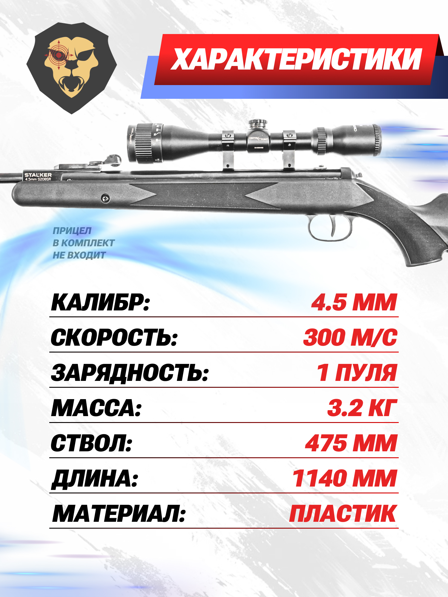 Информация о товаре "Пневматическая винтовка Stalker S208SR 4.5 мм (3 Дж)" носит ознакомительный характер, и не является публичной офертой, определяемой положениями Статьи 437 Гражданского кодекса Российской Федерации, характеристики, внешний вид, цвет и комплектация могут быть изменены производителем без уведомления.